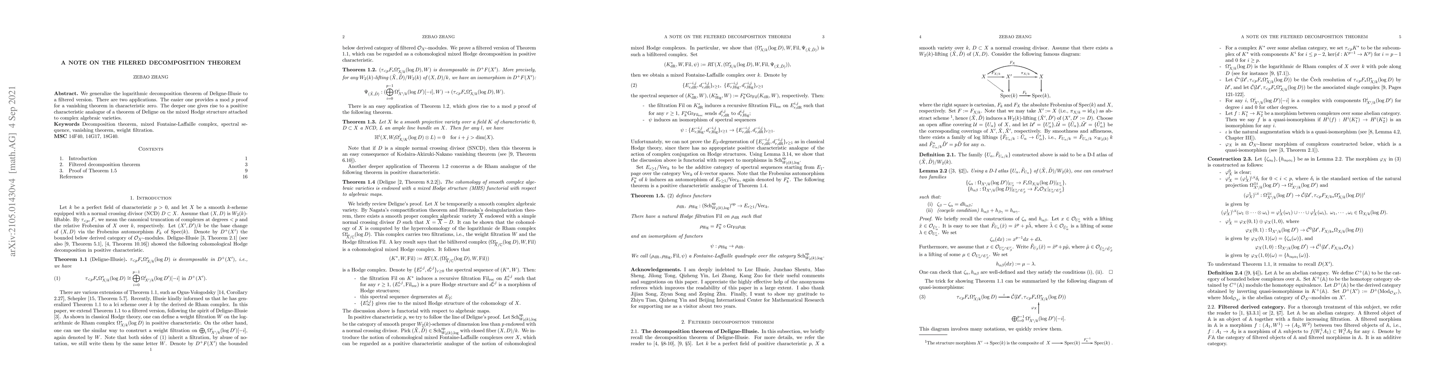 We generalize the logarithmic decomposition theorem of Deligne-Illusie to a filtered version. There are two applications. The easier one provides a mod $p$ proof for a vanishing theorem in characteristic zero. The deeper one gives rise to a positive characteristic analogue of a theorem of Deligne on the mixed Hodge structure attached to complex algebraic varieties.