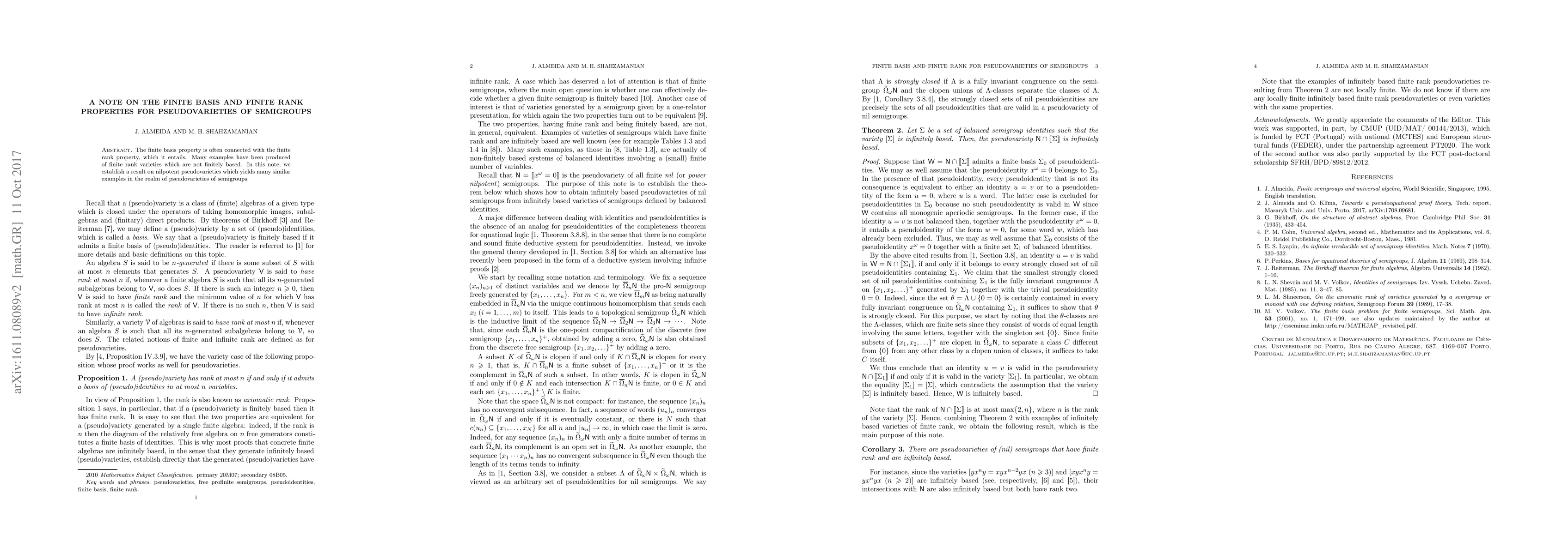 Summary: This paper investigates the finite basis and finite rank properties in pseudovarieties of semigroups, establishing that nilpotent pseudovarieties can exhibit examples where the finite rank property is not finitely based, mirroring similar phenomena in finite rank varieties.