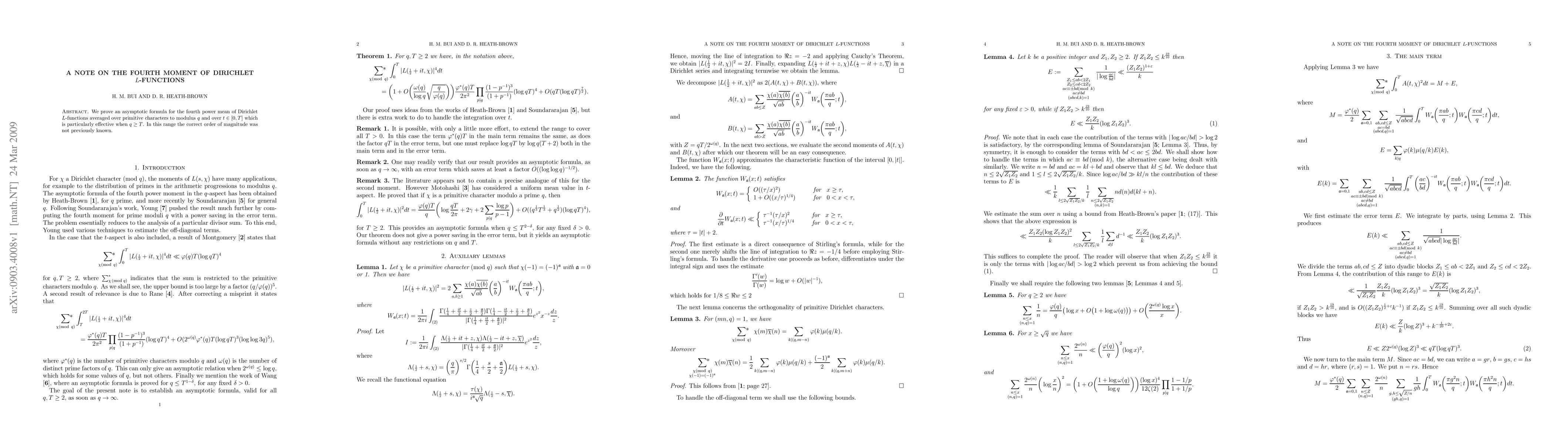 We prove an asymptotic formula for the fourth power mean of Dirichlet L-functions averaged over primitive characters to modulus q and over t\in [0,T] which is particularly effective when q \ge T. In this range the correct order of magnitude was not previously known.