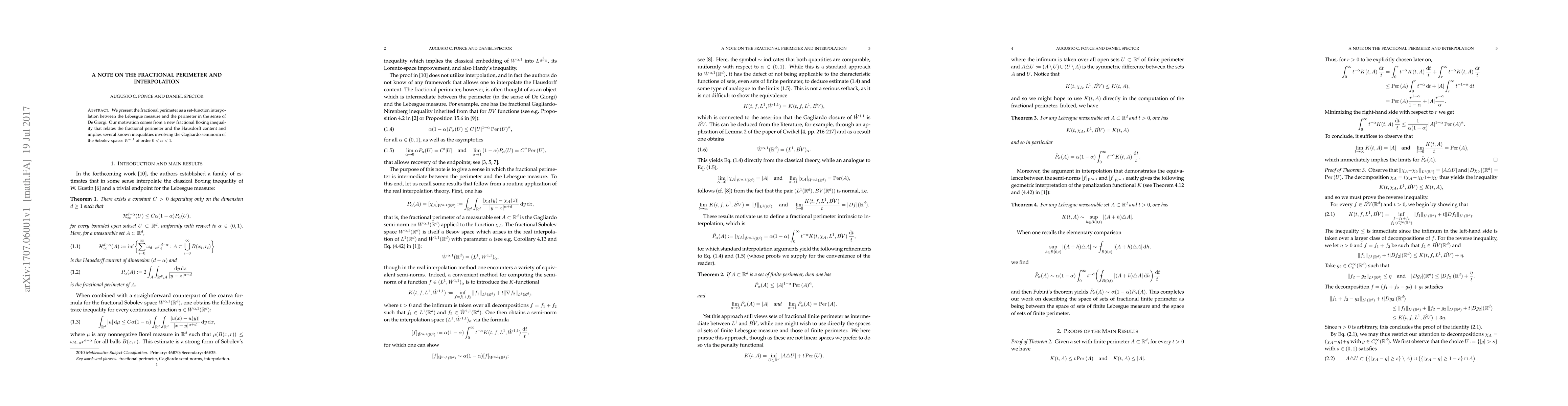 We present the fractional perimeter as a set-function interpolation between the Lebesgue measure and the perimeter in the sense of De Giorgi. Our motivation comes from a new fractional Boxing inequality that relates the fractional perimeter and the Hausdorff content and implies several known inequalities involving the Gagliardo seminorm of the Sobolev spaces $W^{\alpha, 1}$ of order $0 < \alpha < 1$.