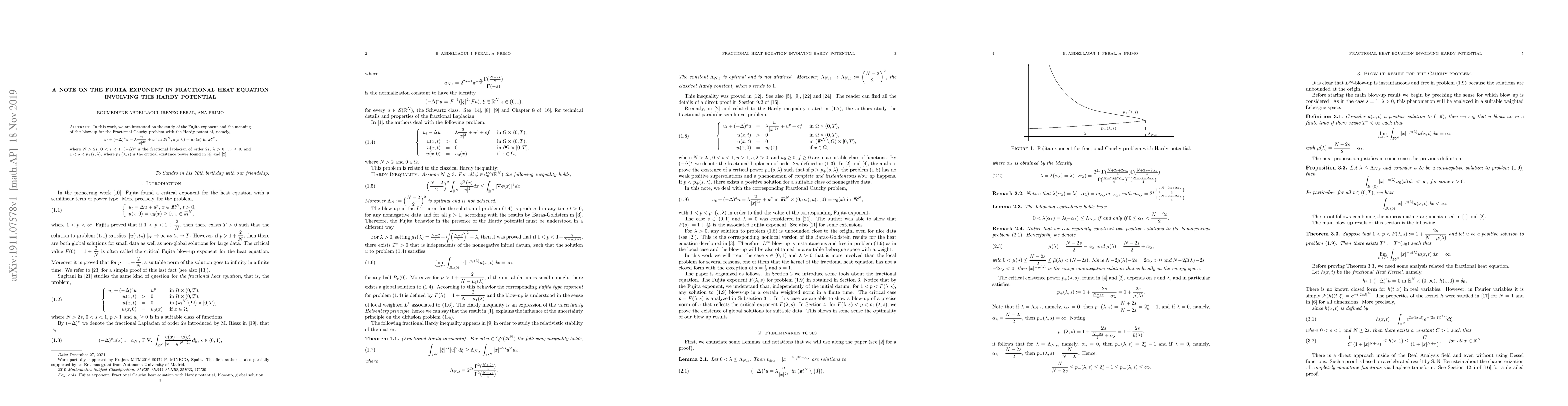 This paper investigates the Fujita exponent and blow-up behavior for the fractional heat equation with a Hardy potential. It focuses on the fractional Cauchy problem involving the fractional Laplacian and a potential term, determining the critical exponent for the existence of solutions.