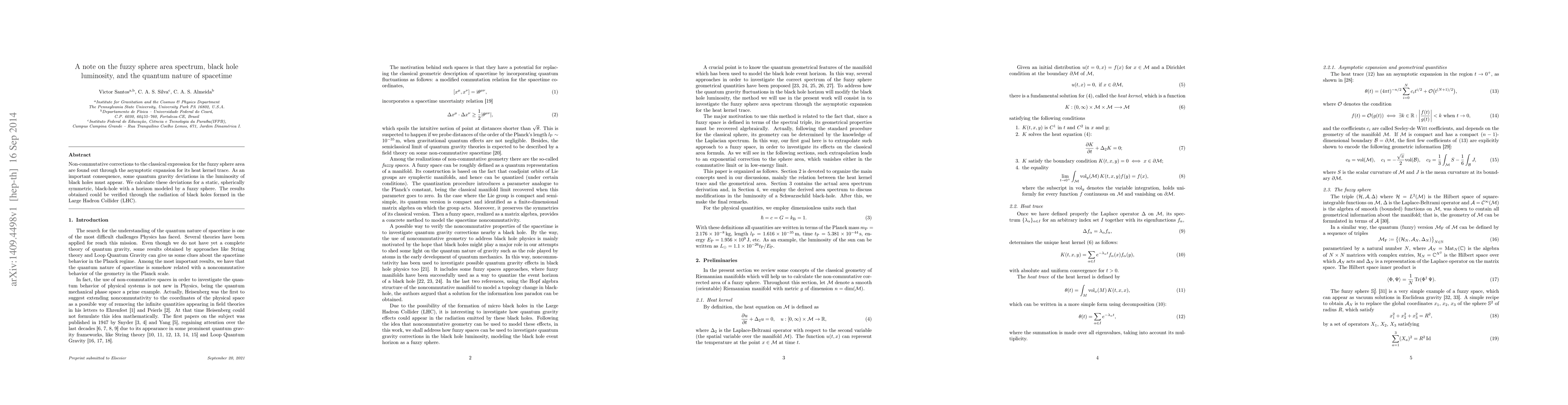 This paper investigates non-commutative corrections to the fuzzy sphere area, revealing quantum gravity effects on black hole luminosity. It calculates these deviations for static, spherical black holes with fuzzy horizon models, suggesting potential verification through LHC-produced black hole radiation.