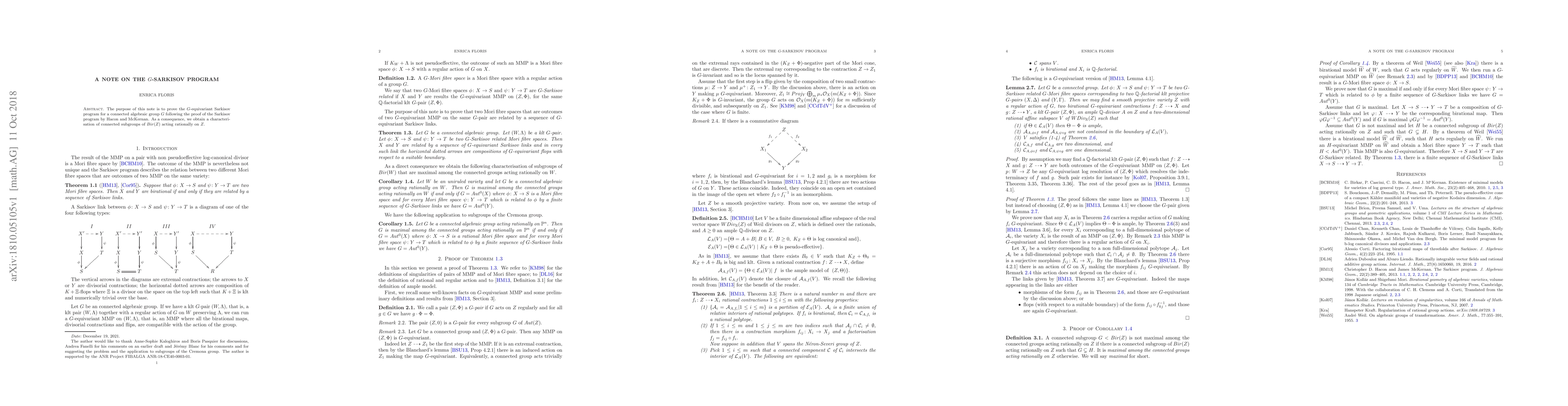 The purpose of this note is to prove the $G$-equivariant Sarkisov program for a connected algebraic group $G$ following the proof of the Sarkisov program by Hacon and McKernan. As a consequence, we obtain a characterisation of connected subgroups of $Bir(Z)$ acting rationally on $Z$.