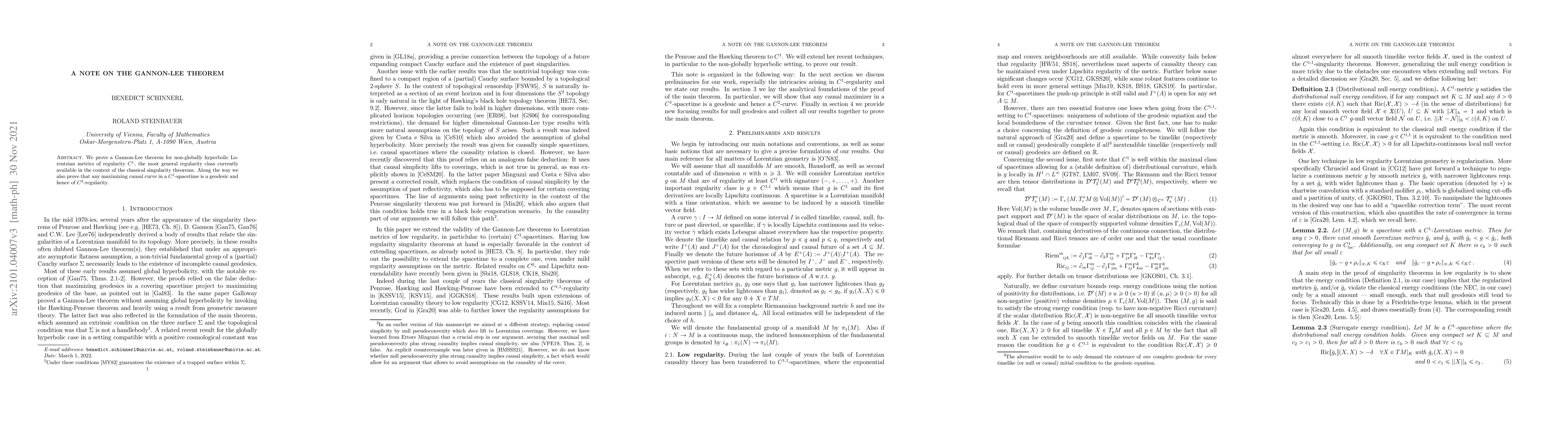 This paper proves a Gannon-Lee theorem for $C^1$ non-globally hyperbolic Lorentzian metrics, extending the classical singularity theorems. It also establishes that any maximizing causal curve in such spacetimes is a geodesic of $C^2$-regularity.