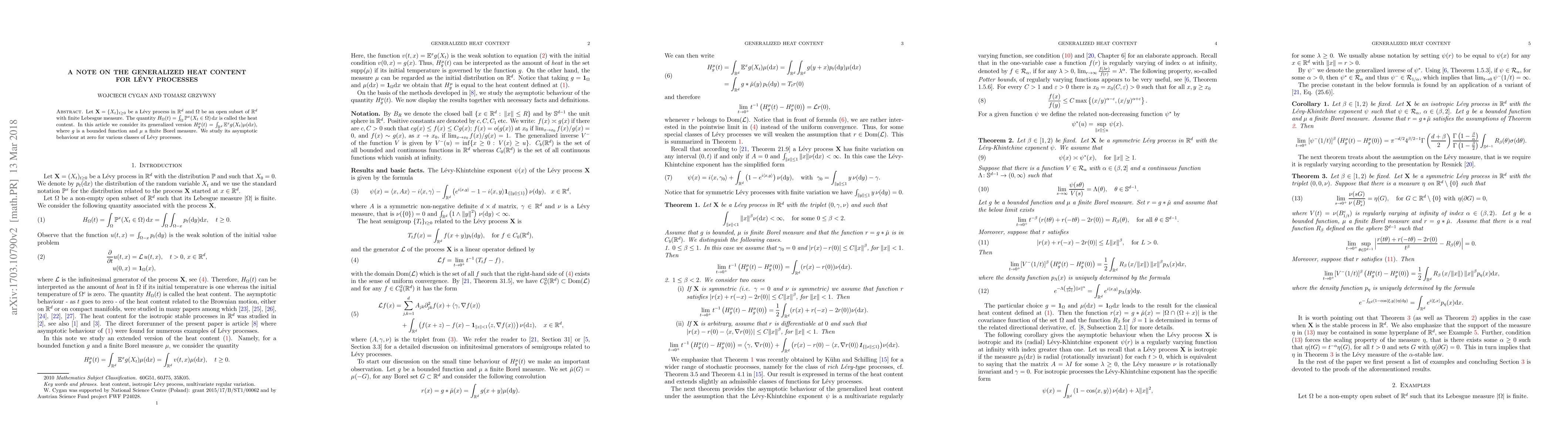 The paper investigates the generalized heat content for Lévy processes, focusing on its asymptotic behavior at zero for various classes of processes.