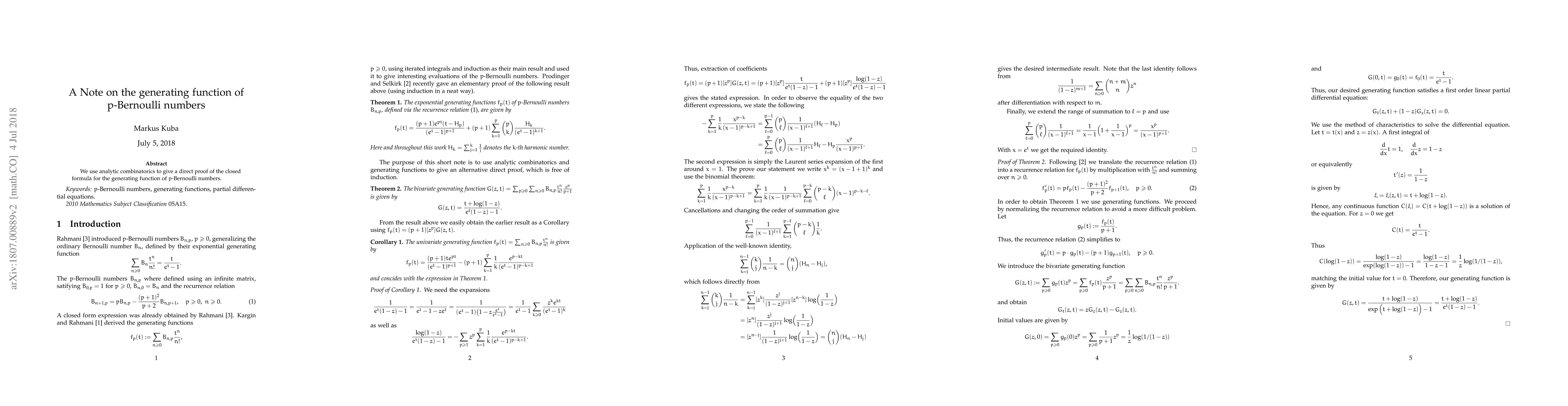 We use analytic combinatorics to give a direct proof of the closed formula for the generating function of $p$-Bernoulli numbers.