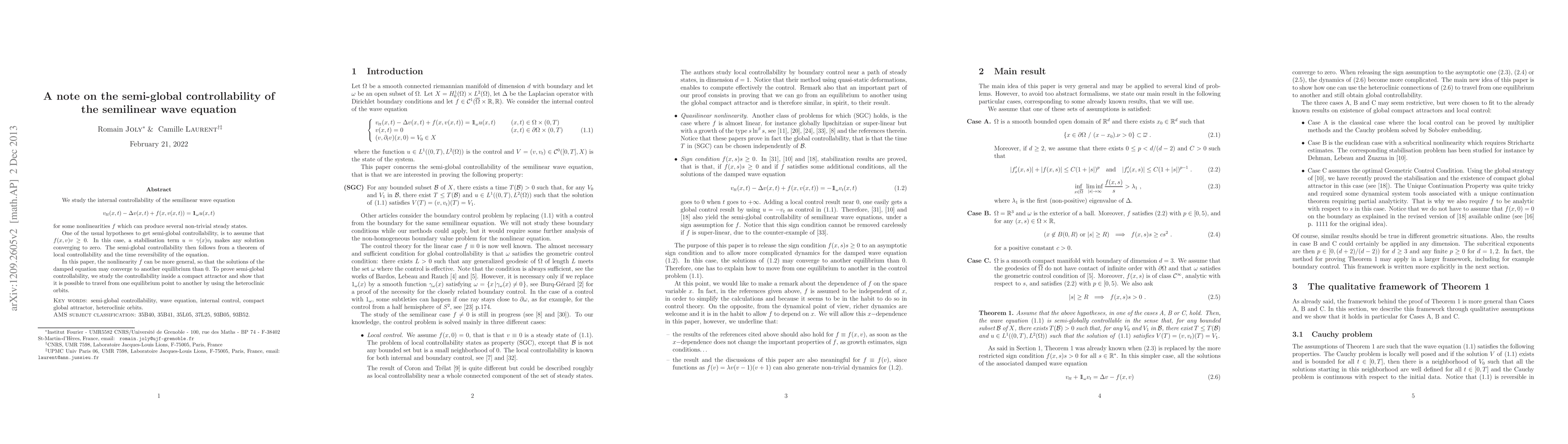 This paper investigates the internal controllability of the semilinear wave equation under more general nonlinearities than previously assumed. It demonstrates global controllability by exploring controllability within a compact attractor and utilizing heteroclinic orbits to transition between different equilibrium points.