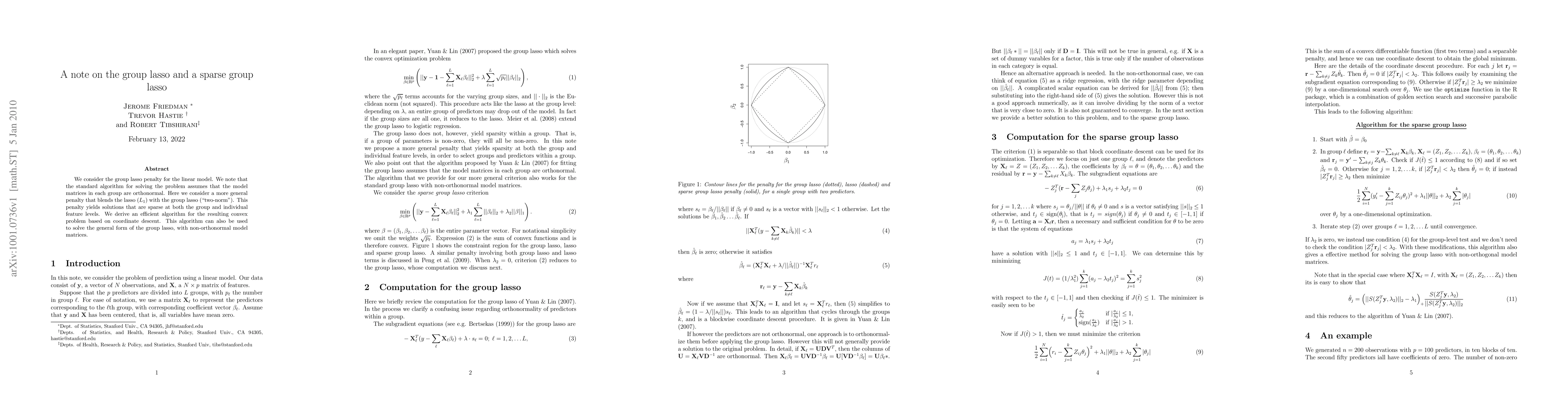 This paper proposes a generalized sparse group lasso penalty that combines the lasso and group lasso, allowing for non-orthonormal model matrices. An efficient coordinate descent algorithm is developed to solve the resulting convex optimization problem.