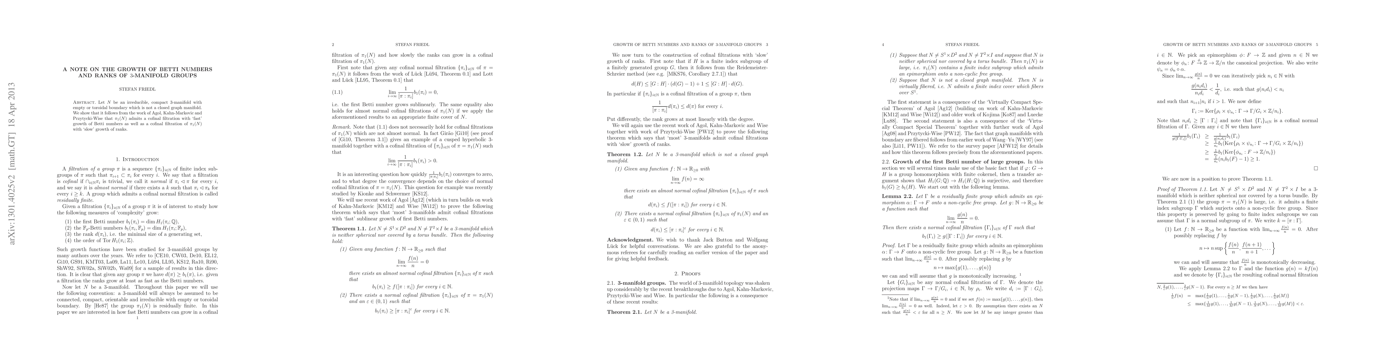 Let N be an irreducible, compact 3-manifold with empty or toroidal boundary which is not a closed graph manifold. Using recent work of Agol, Kahn-Markovic and Przytycki-Wise we will show that pi_1(N) admits a cofinal filtration with `fast' growth of Betti numbers as well as a cofinal filtration of pi_1(N) with `slow' growth of ranks.
