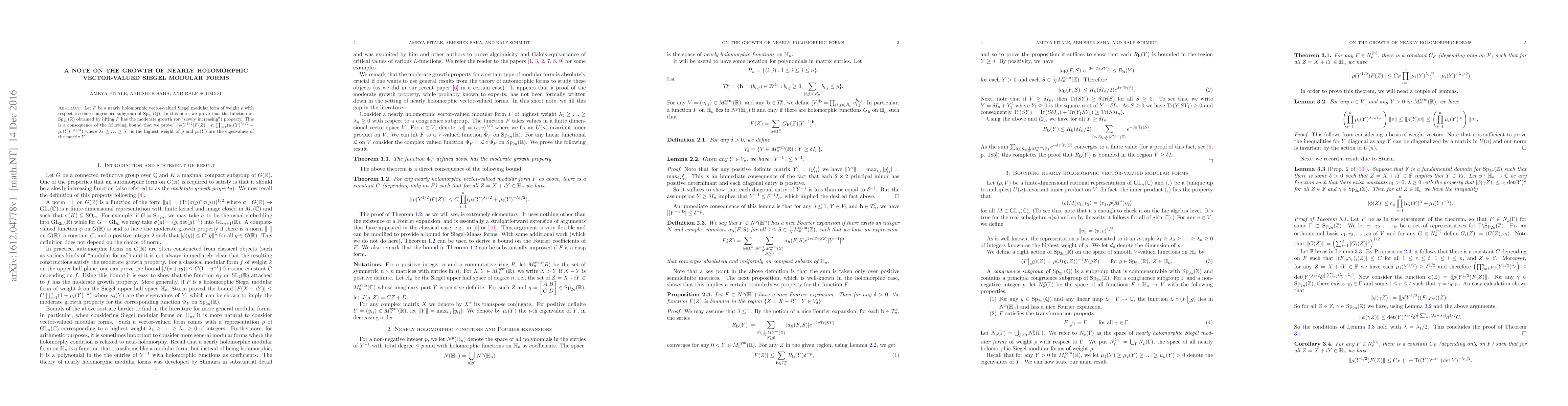 A research paper proves that nearly holomorphic vector-valued Siegel modular forms grow at a slow rate when lifted to the real numbers, with implications for number theory and modular forms.