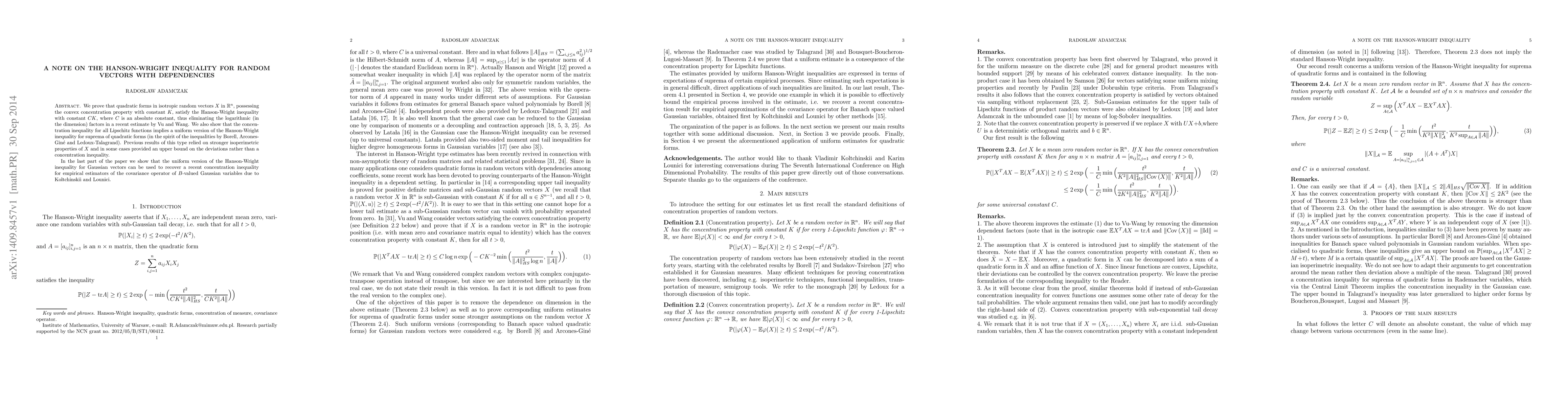 This paper proves the Hanson-Wright inequality for isotropic random vectors with convex concentration properties, eliminating logarithmic dimension factors. It also establishes a uniform version of the Hanson-Wright inequality for suprema of quadratic forms, improving upon previous results that required stronger isoperimetric properties.