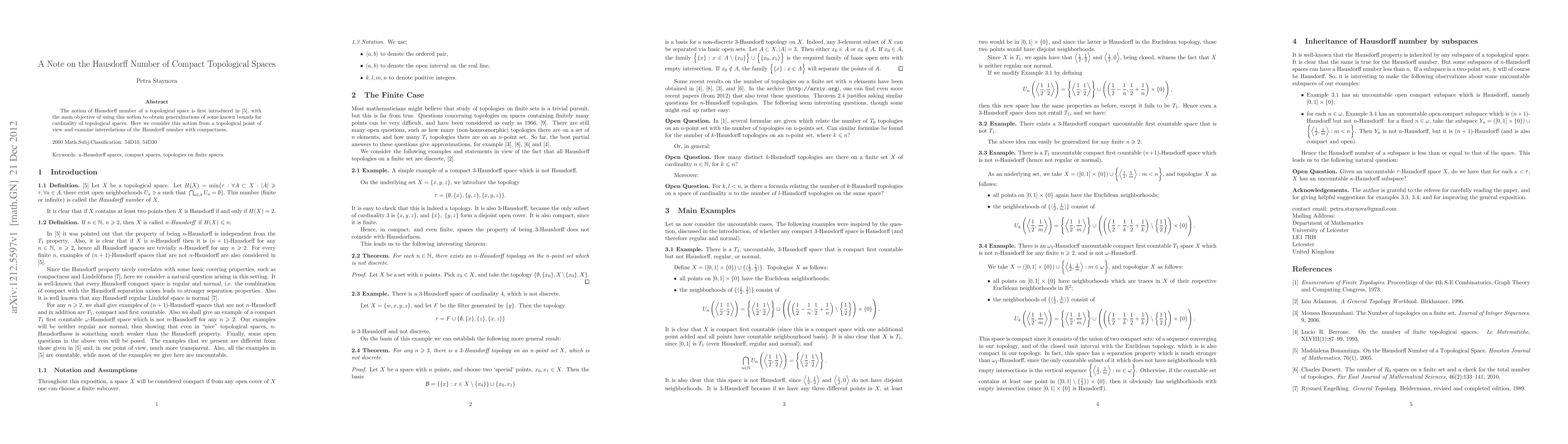 The notion of Hausdorff number of a topological space is first introduced in \cite{bonan}, with the main objective of using this notion to obtain generalizations of some known bounds for cardinality of topological spaces. Here we consider this notion from a topological point of view and examine interrelations of the Hausdorff number with compactness.