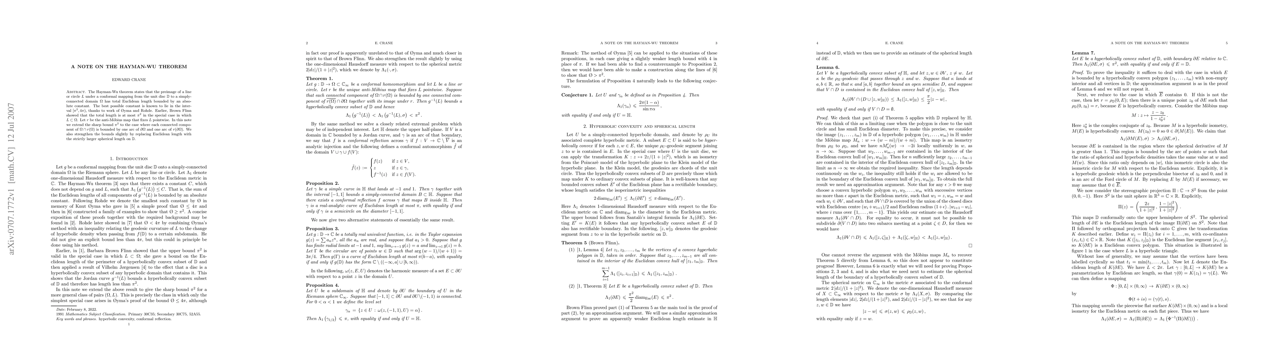 The Hayman-Wu theorem states that the preimage of a line or circle L under a conformal mapping from the unit disc to a simply-connected domain U has total Euclidean length bounded by an absolute constant. The best possible constant is known to lie in the interval [pi^2, 4 pi), thanks to work of {\O}yma and Rohde. Earlier, Brown Flinn showed that the total length is at most pi^2 in the special case in which U contains L. Let r be the anti-M\"obius map that fixes L pointwise. In this note we extend the sharp bound pi^2 to the case where each connected component of the intersection of U with r(U) is bounded by one arc of U and its image under r. We also strengthen the bounds slightly by replacing Euclidean length with the strictly larger spherical length restricted to the unit disc.