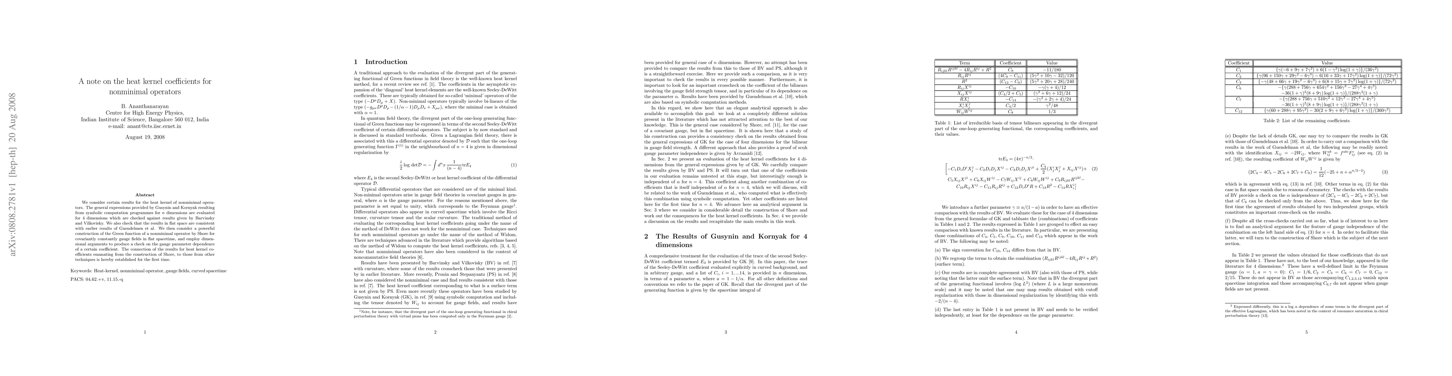 We consider certain results for the heat kernel of nonminimal operators. The general expressions provided by Gusynin and Kornyak resulting from symbolic computation programmes for n dimensions are evaluated for 4 dimensions which are checked against results given by Barvinsky and Vilkovisky. We also check that the results in flat space are consistent with earlier results of Guendelmen et al. We then consider a powerful construction of the Green function of a nonminimal operator by Shore for covariantly constantly gauge fields in flat spacetime, and employ dimensional arguments to produce a check on the gauge parameter dependence of a certain coefficient. The connection of the results for heat kernel coefficients emanating from the construction of Shore, to those from other techniques is hereby established for the first time.