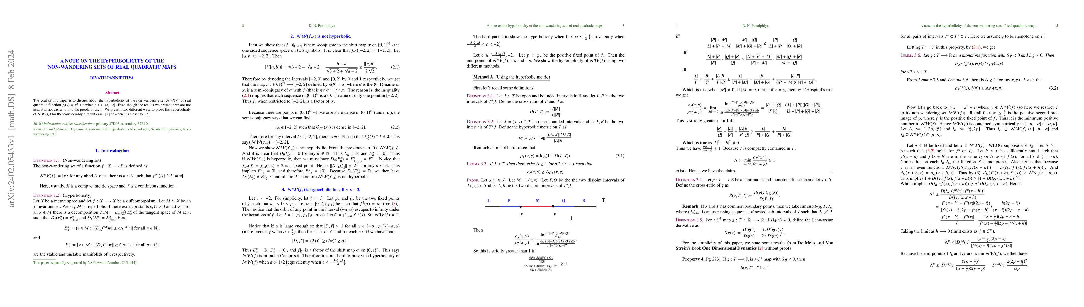 This paper explores the hyperbolicity of the non-wandering set $\mathcal{NW}(f_c)$ for real quadratic functions $f_c(x)=x^2+c$ when $c\in (-\infty, -2]$. It presents two distinct proofs for the challenging case when $c$ is near $-2$.