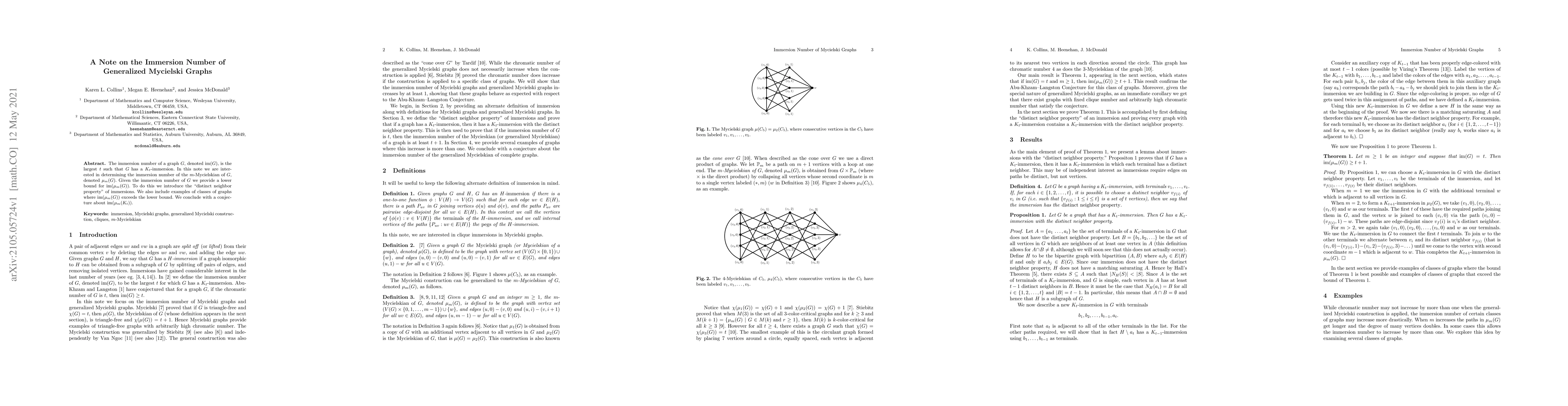 This paper studies the immersion number of the m-Mycielskian graph, a new concept that extends the concept of immersion to this class of graphs, providing lower bounds for immersion numbers and exploring specific examples.