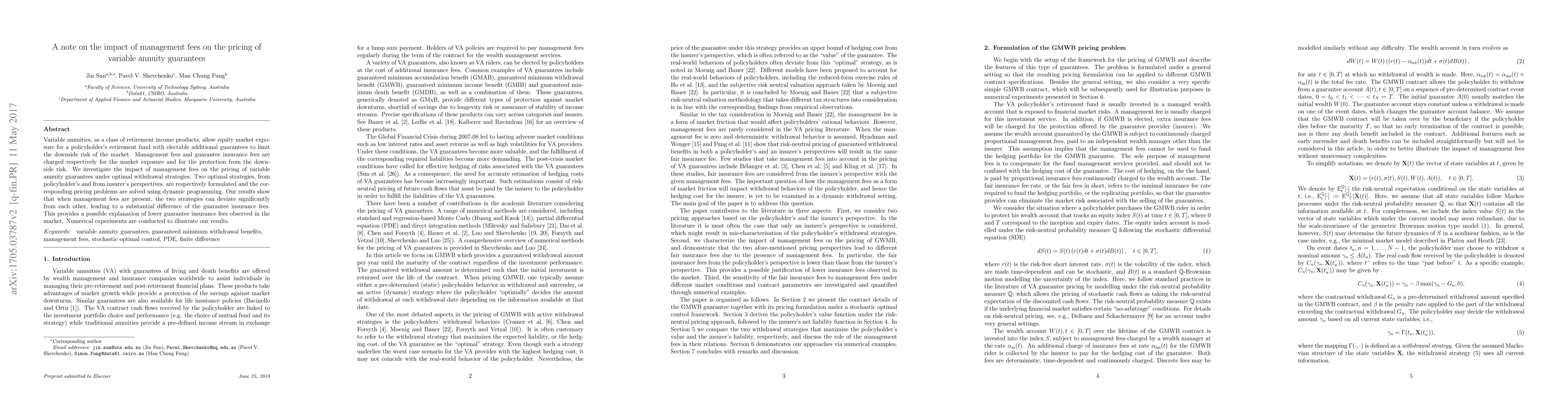 Variable annuities, as a class of retirement income products, allow equity market exposure for a policyholder's retirement fund with electable additional guarantees to limit the downside risk of the market. Management fees and guarantee insurance fees are charged respectively for the market exposure and for the protection from the downside risk. We investigate the impact of management fees on the pricing of variable annuity guarantees under optimal withdrawal strategies. Two optimal strategies, from policyholder's and from insurer's perspectives, are respectively formulated and the corresponding pricing problems are solved using dynamic programming. Our results show that when management fees are present, the two strategies can deviate significantly from each other, leading to a substantial difference of the guarantee insurance fees. This provides a possible explanation of lower guarantee insurance fees observed in the market. Numerical experiments are conducted to illustrate our results.