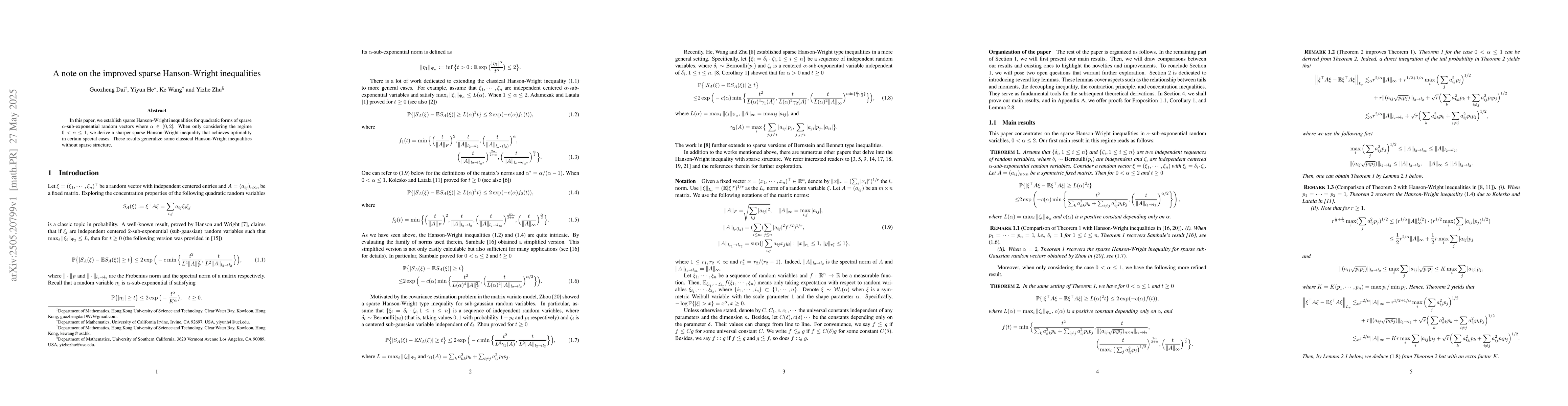 The paper presents novel sparse Hanson-Wright inequalities that provide sharper bounds for quadratic forms of sparse α-sub-exponential random vectors, specifically for 0 < α ≤ 1.