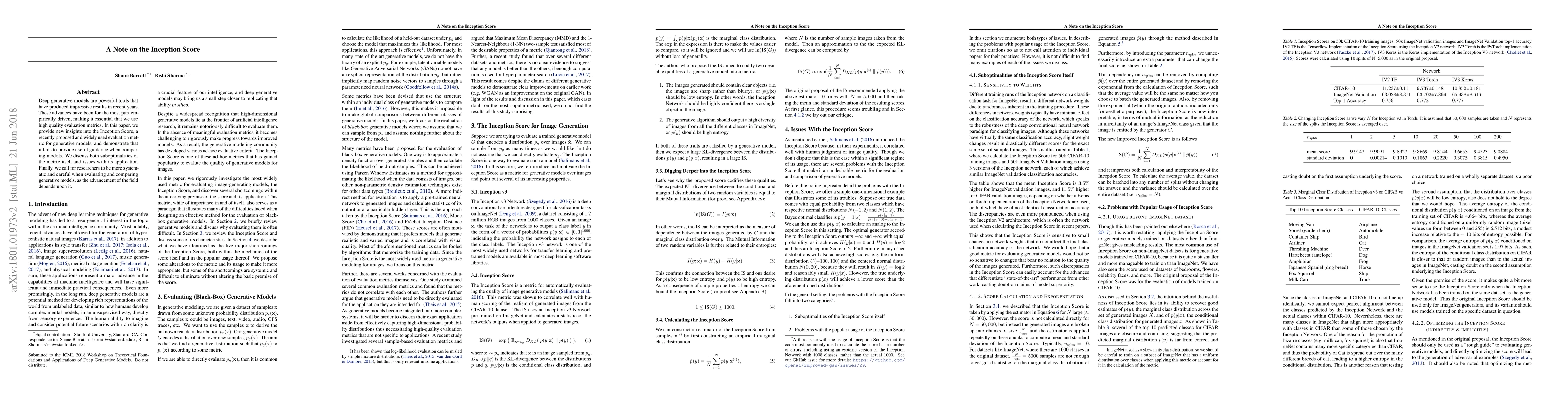 The paper critiques the Inception Score, a popular metric for evaluating deep generative models, revealing its shortcomings in providing meaningful model comparisons. It emphasizes the need for rigorous and systematic evaluation methods in the field.