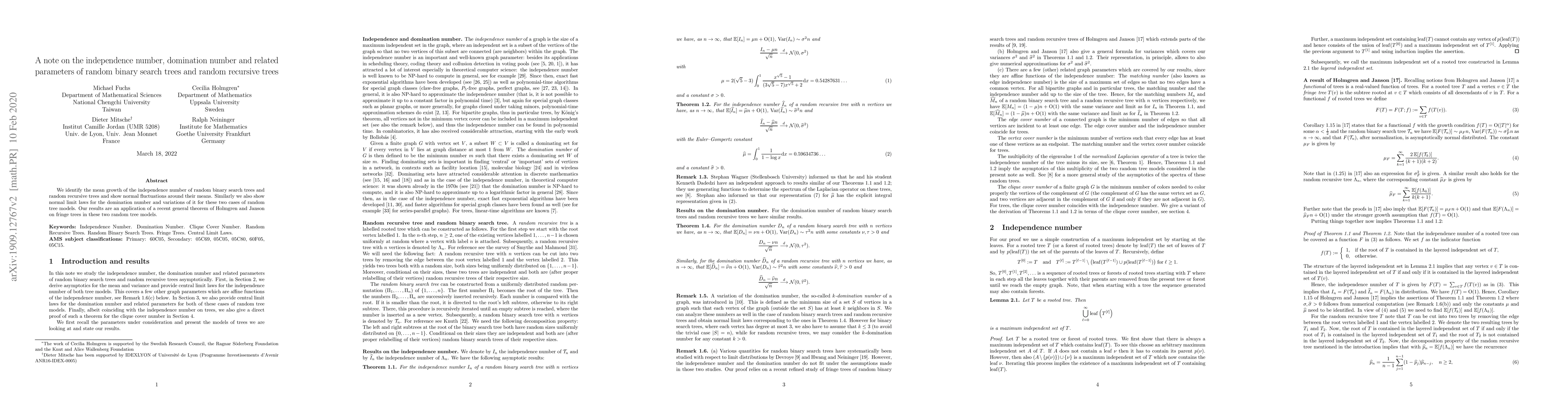 This paper investigates the mean growth and fluctuations of the independence number and domination number in random binary search trees and random recursive trees, demonstrating normal limit laws based on a recent theorem by Holmgren and Janson on fringe trees.
