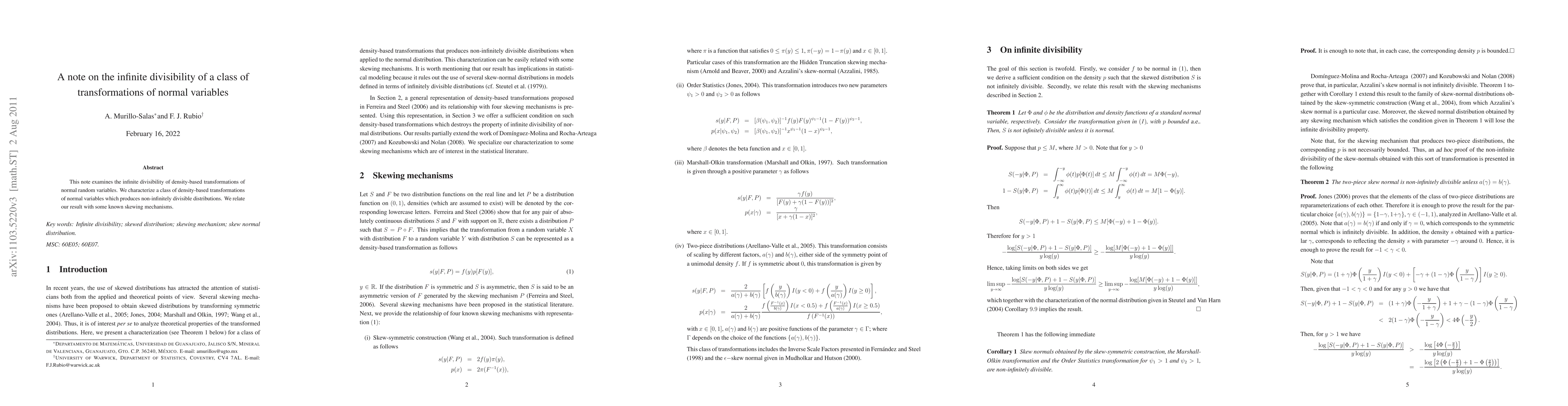 The research extends existing work on skew-normal distributions by characterizing a broader class of transformations and relating them to known skewing mechanisms, identifying conditions under which these transformations produce non-infinitely divisible distributions.