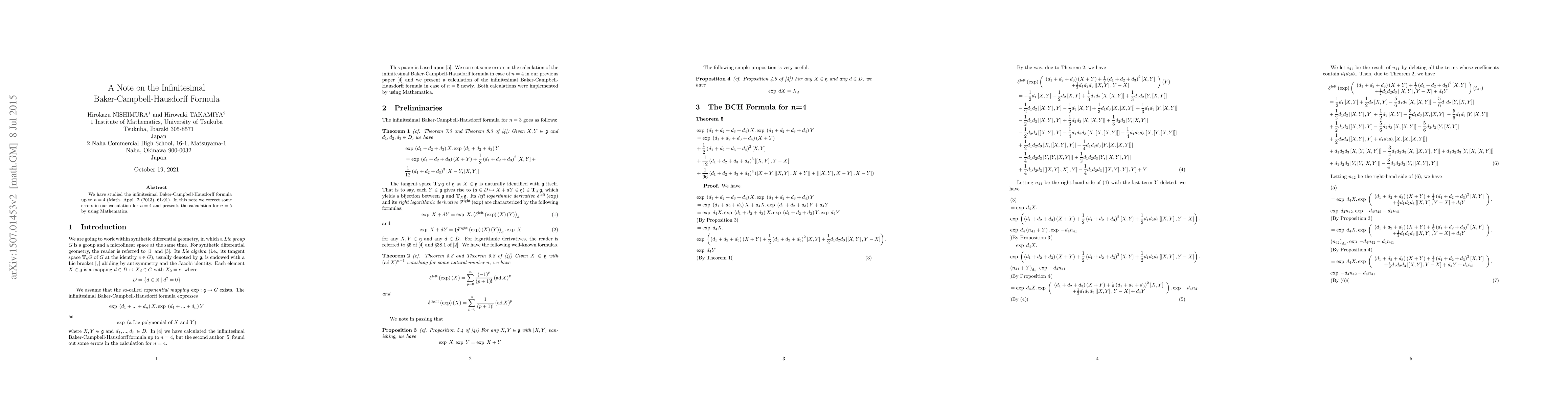 This paper corrects errors in the calculation of the infinitesimal Baker-Campbell-Hausdorff formula up to n=4 and extends the calculation to n=5 using Mathematica, correcting previous mistakes and presenting new results.