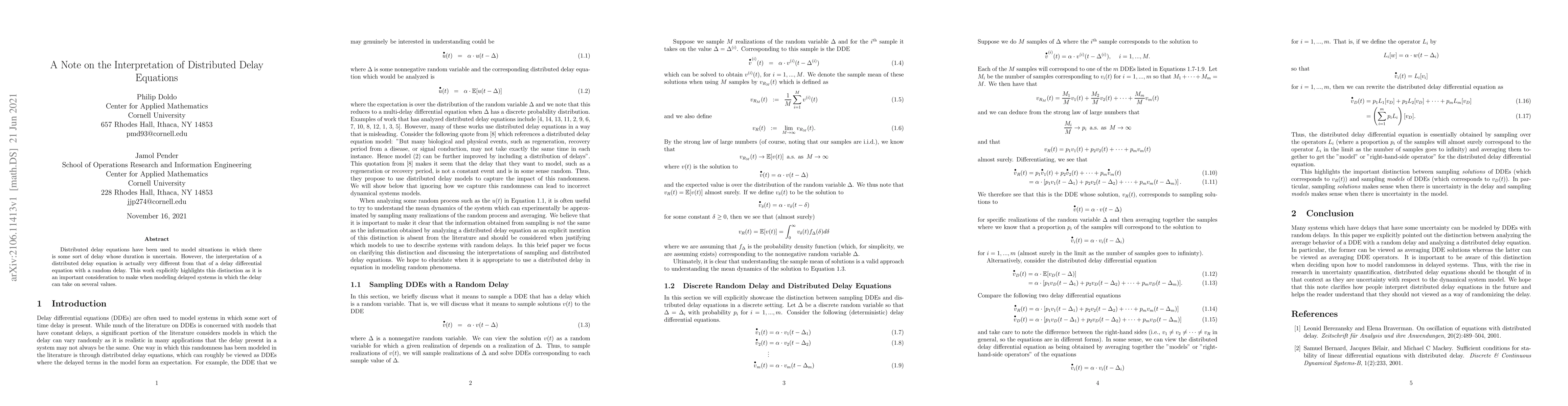 Distributed delay equations have been used to model situations in which there is some sort of delay whose duration is uncertain. However, the interpretation of a distributed delay equation is actually very different from that of a delay differential equation with a random delay. This work explicitly highlights this distinction as it is an important consideration to make when modeling delayed systems in which the delay can take on several values.