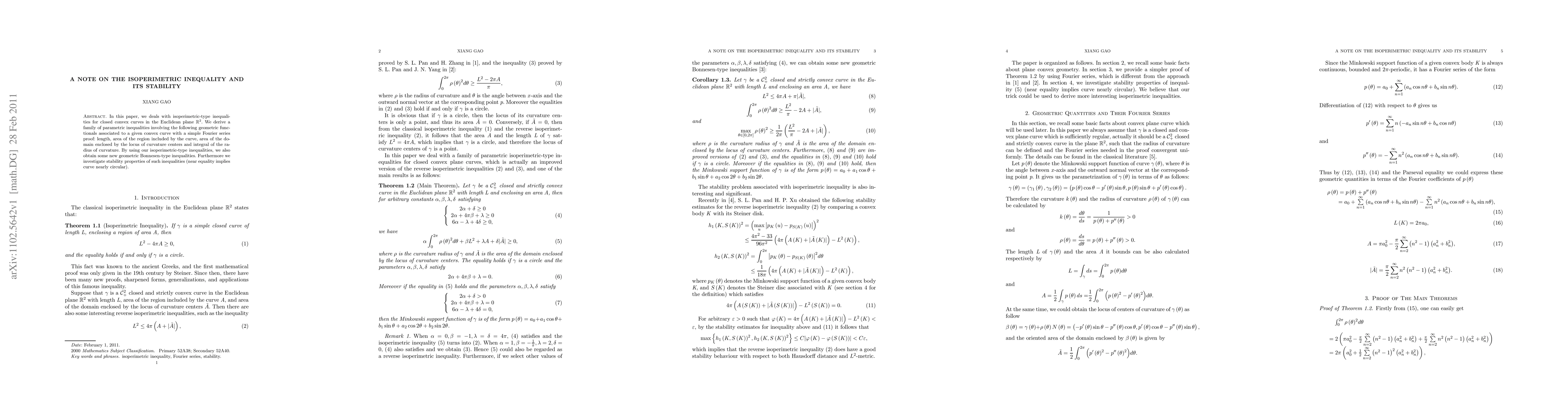 This paper explores isoperimetric-type inequalities for closed convex curves in R^2, deriving parametric inequalities involving length, area, and curvature centers using a Fourier series proof. It also establishes new geometric inequalities and investigates the stability of these inequalities, showing that near equality implies the curve is nearly circular.
