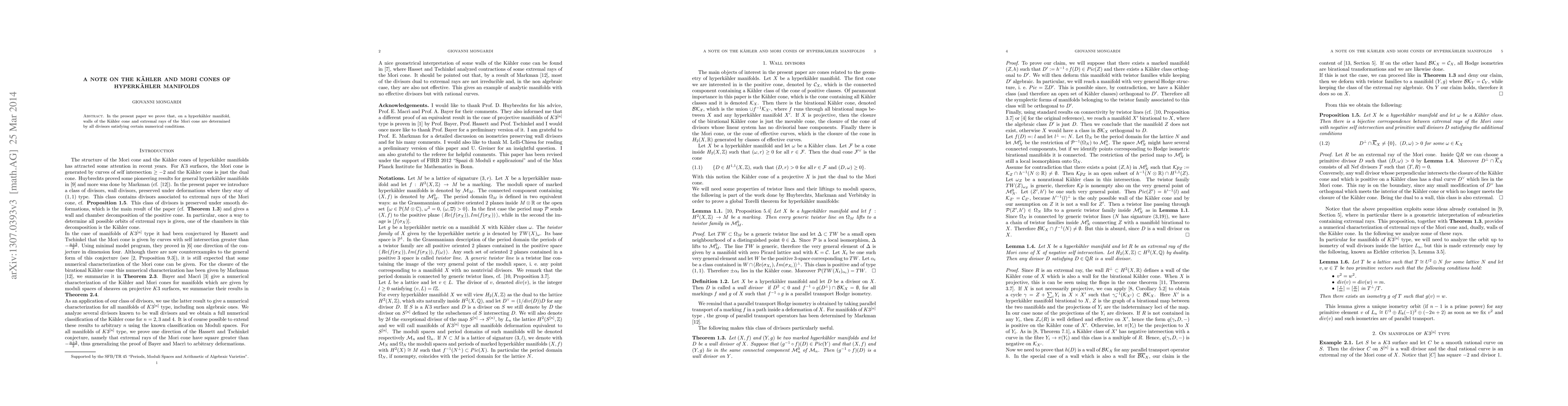 Researchers prove that walls of the K"ahler cone and extremal rays of the Mori cone in hyperk"ahler manifolds are determined by specific numerical conditions on divisors.