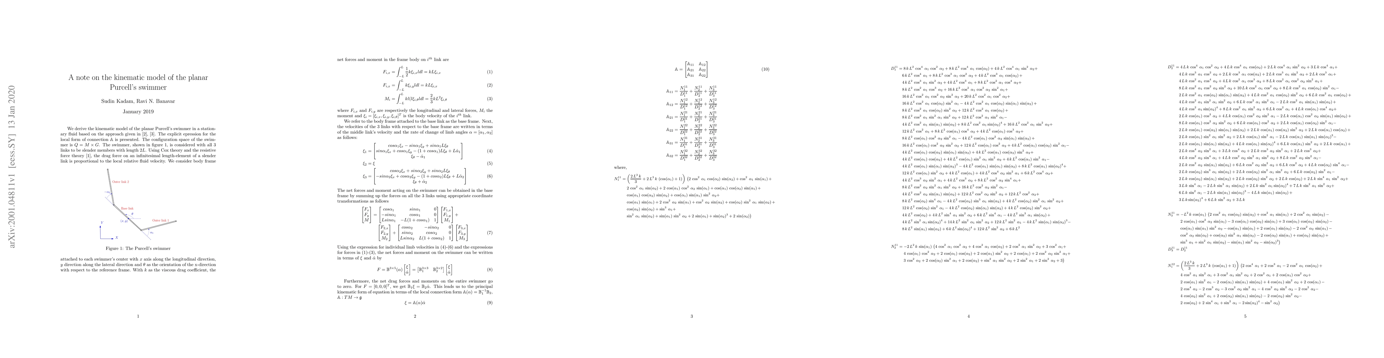 The paper derives the kinematic model for the planar Purcell's swimmer, emphasizing the explicit expression for the local form of the connection form, which is crucial for understanding microswimmer dynamics at low Reynolds numbers. This revisitation aims to clarify and enhance the existing theoretical framework.