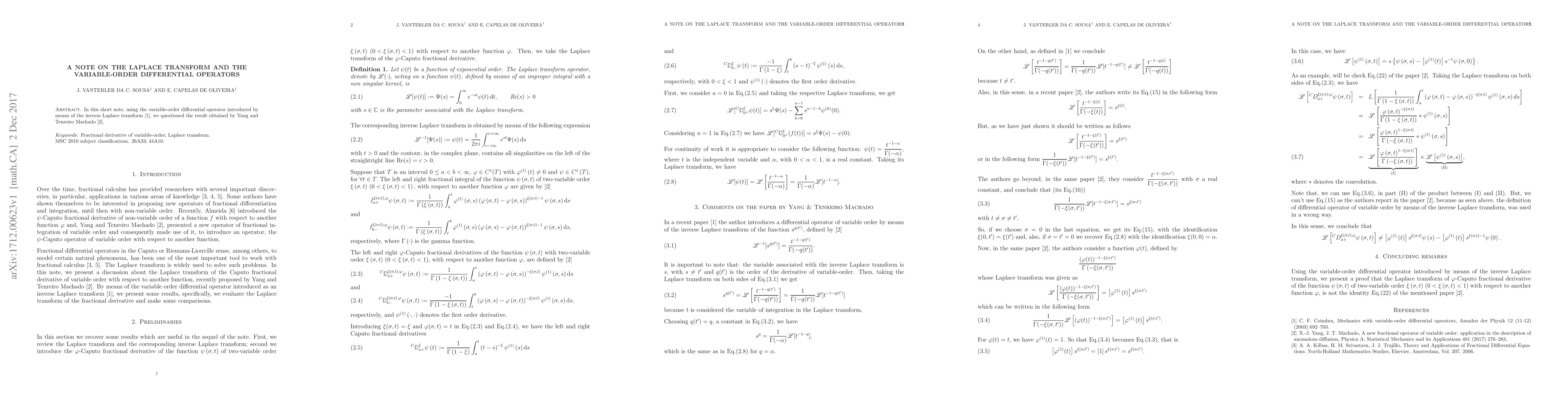 Researchers questioned Yang and Tenreiro Machado's result on variable-order differential operators using the Laplace transform, challenging their original findings.