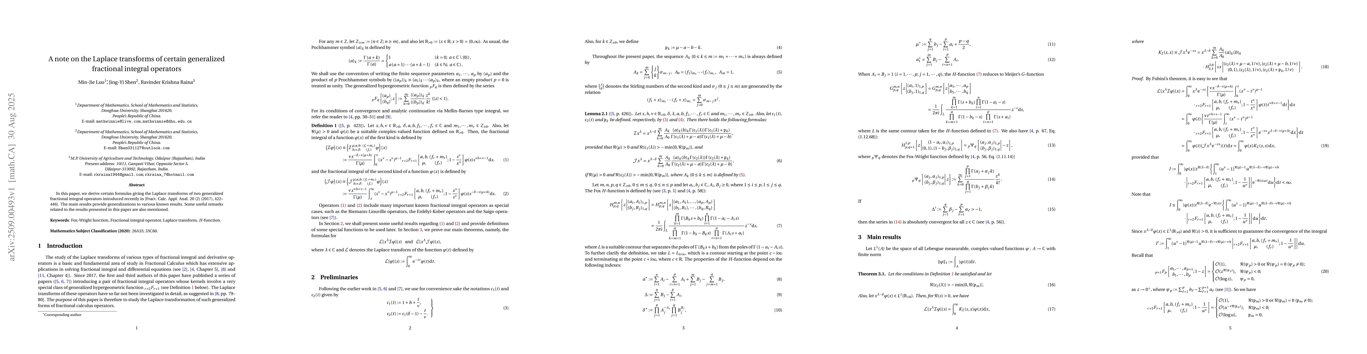 In this paper, we derive certain formulas giving the Laplace transforms of two generalized fractional integral operators introduced recently in [Fract. Calc. Appl. Anal. 20 (2) (2017), 422--446]. The main results provide generalizations to various known results. Some useful remarks related to the results presented in this paper are also mentioned.