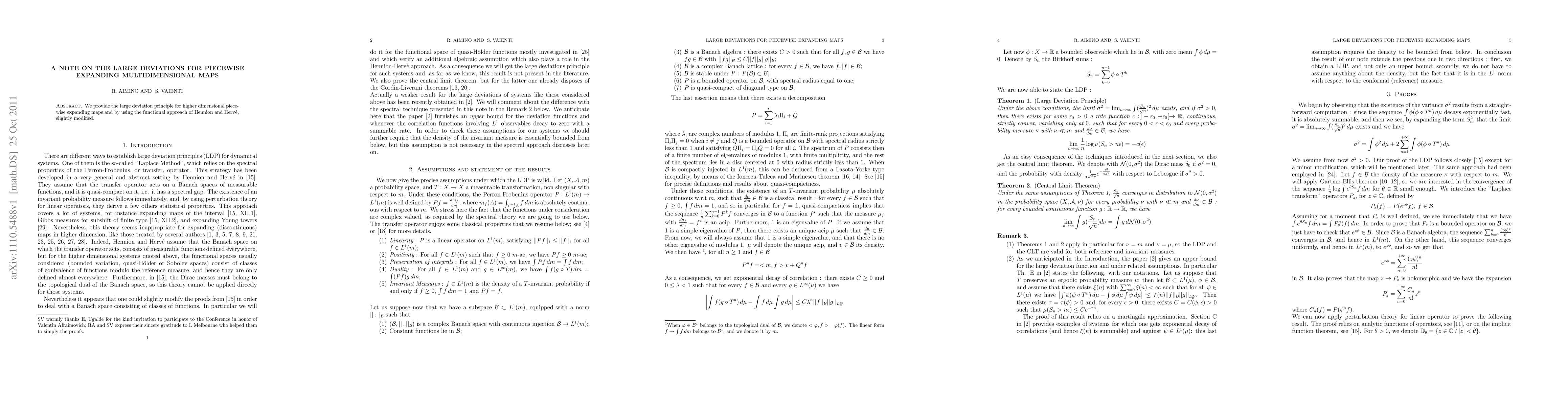 Summary: This paper establishes the large deviation principle for higher-dimensional piecewise expanding maps, utilizing a modified functional approach from Hennion and Hervé. The results extend the theory to multidimensional contexts.