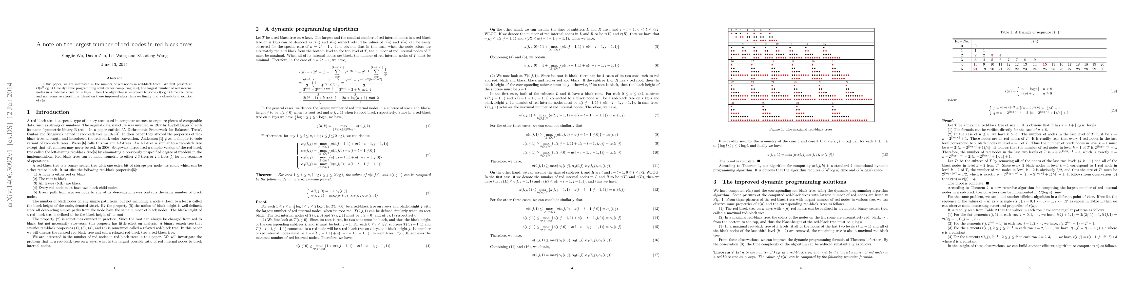 This paper explores the largest number of red nodes in red-black trees, presenting an $O(n^2\log n)$ dynamic programming solution, followed by improved $O(\log n)$ recursive and nonrecursive algorithms, culminating in a closed-form expression for $r(n)$.