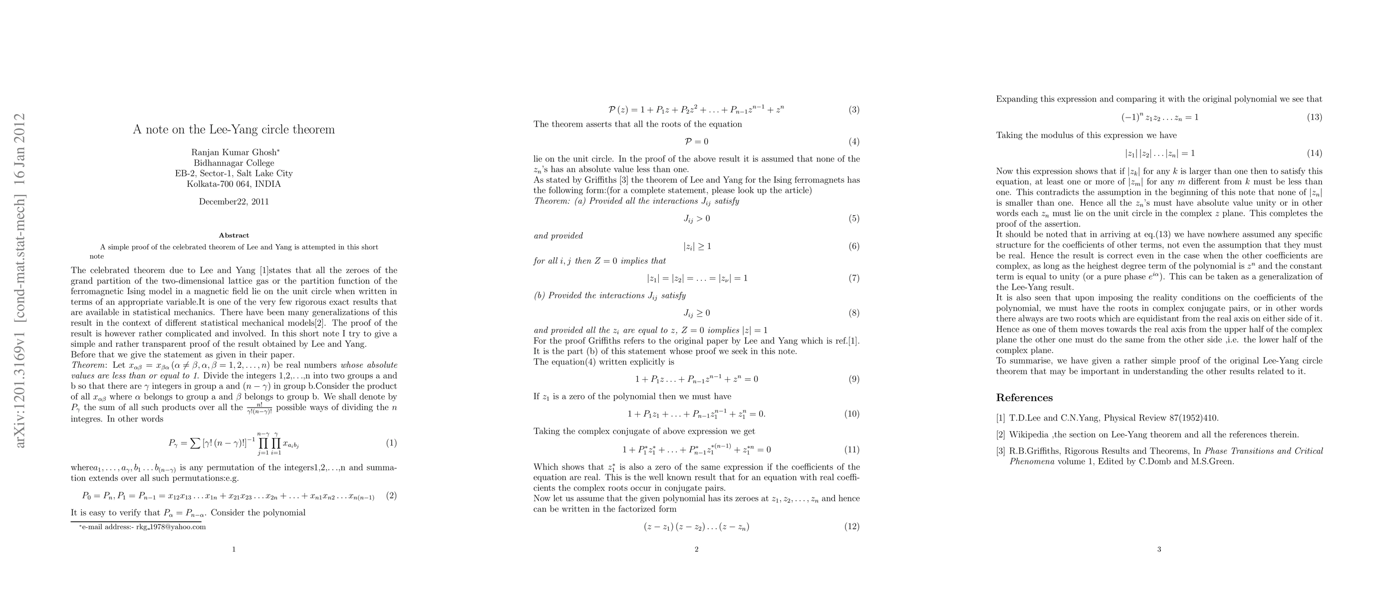 This paper provides a simplified proof of Lee-Yang's circle theorem, a fundamental concept in statistical mechanics.