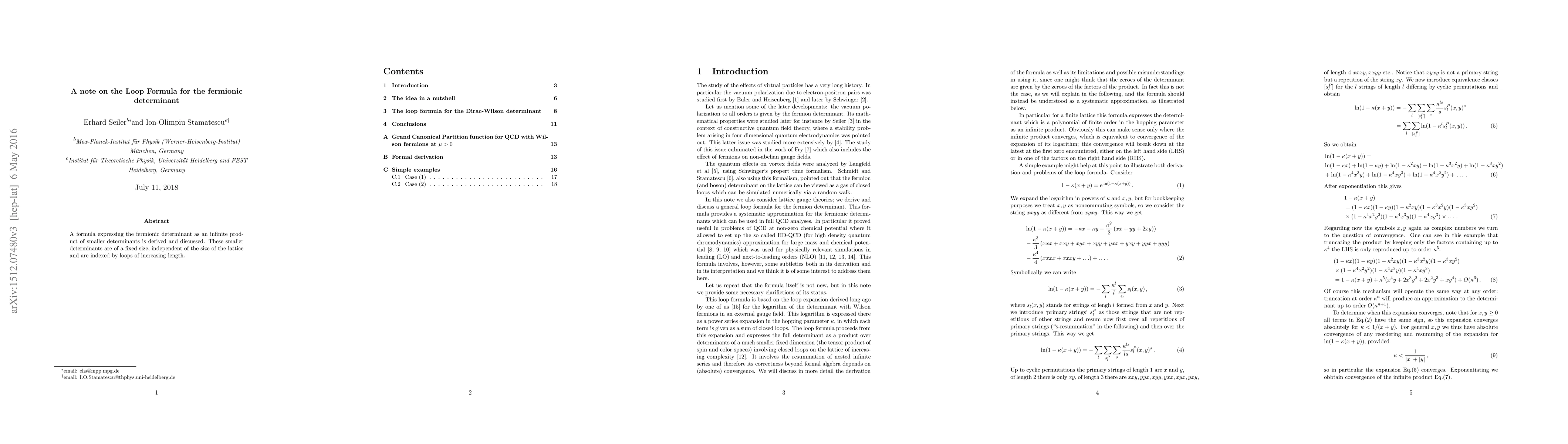 A formula expressing the fermionic determinant as an infinite product of smaller determinants is derived and discussed. These smaller determinants are of a fixed size, independent of the size of the lattice and are indexed by loops of increasing length.