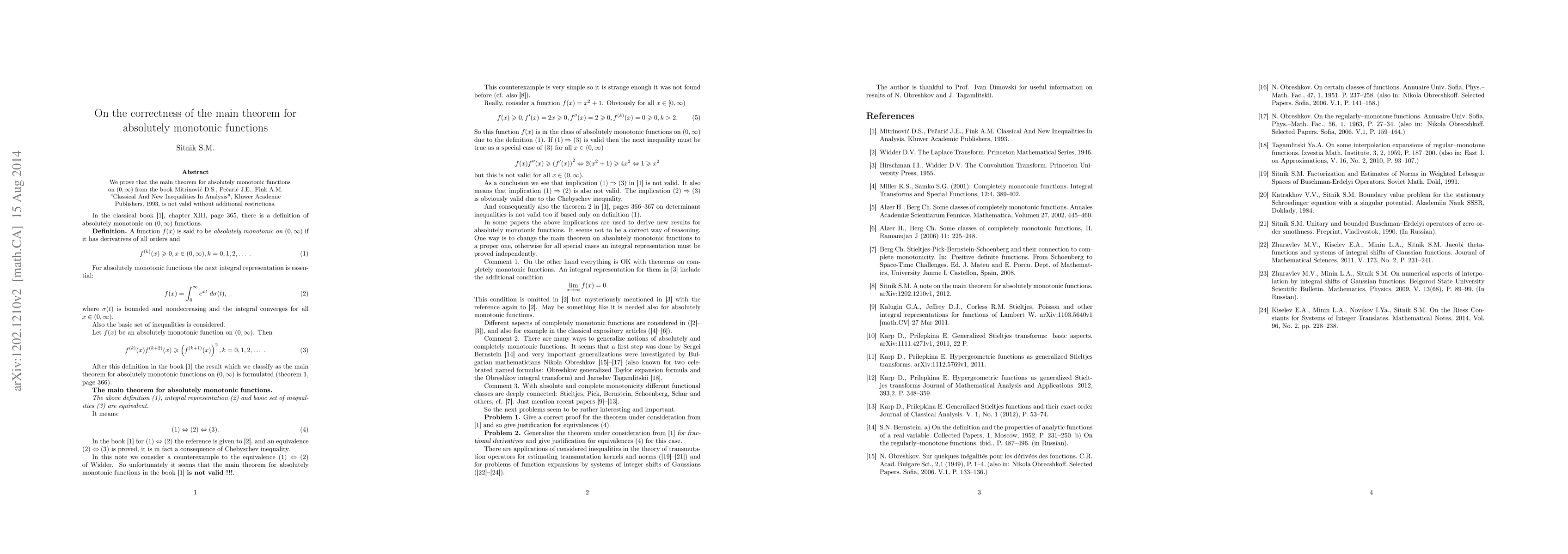 Summary: This paper demonstrates that the main theorem regarding absolutely monotonic functions, as presented in the book by Mitrinović, Pečarić, and Fink, does not hold without additional constraints. The authors provide evidence to show the necessity of these restrictions.