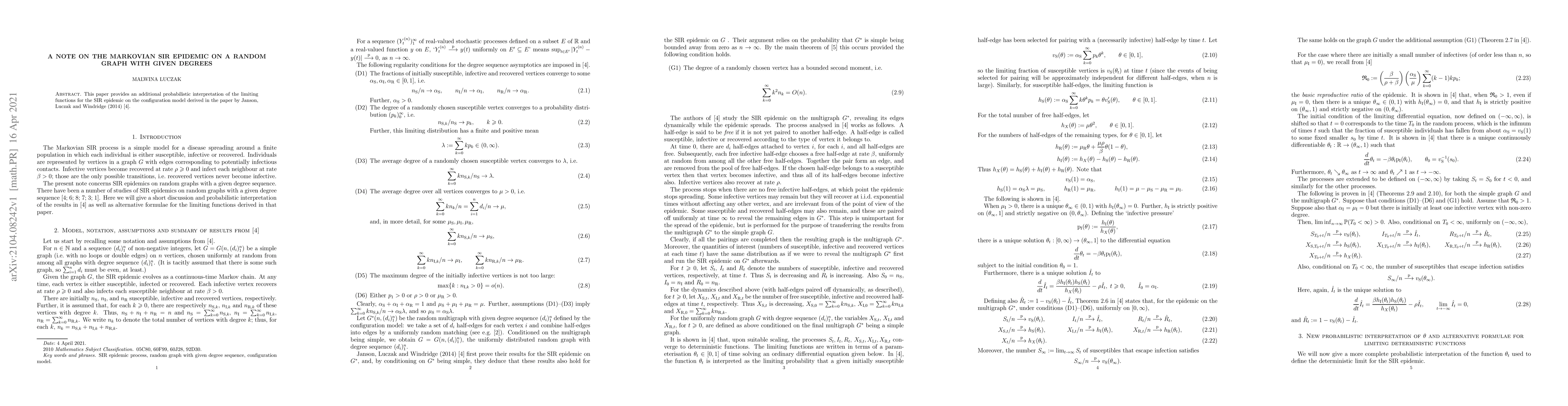 This paper provides an additional probabilistic interpretation of the limiting functions for the SIR epidemic on the configuration model derived in the paper by Janson, Luczak and Windridge (2014).