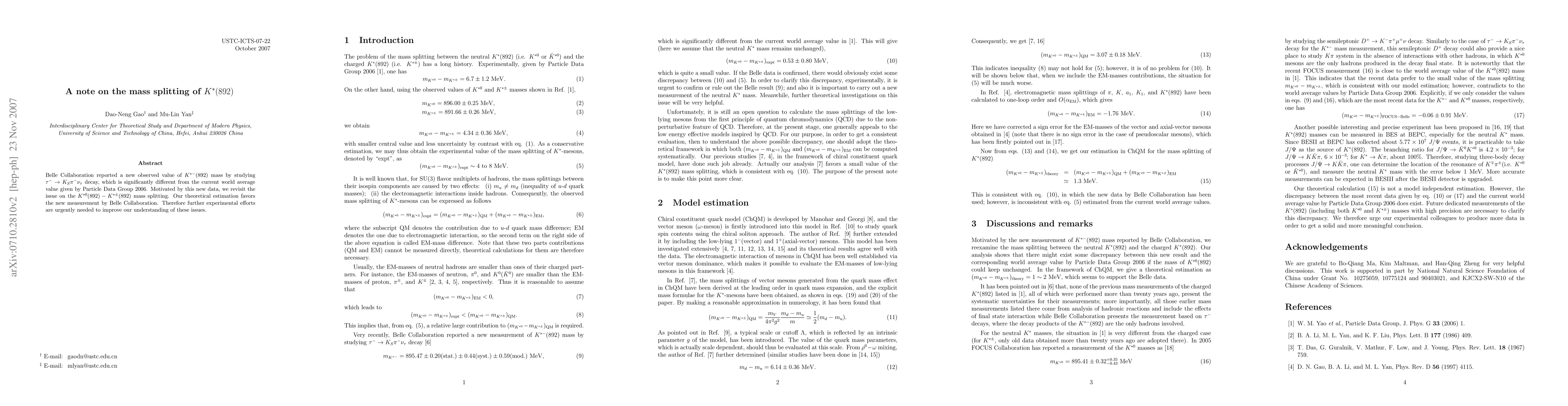Researchers found a new mass value for the K*(892) particle that differs significantly from the current world average, sparking renewed interest in understanding its mass splitting.