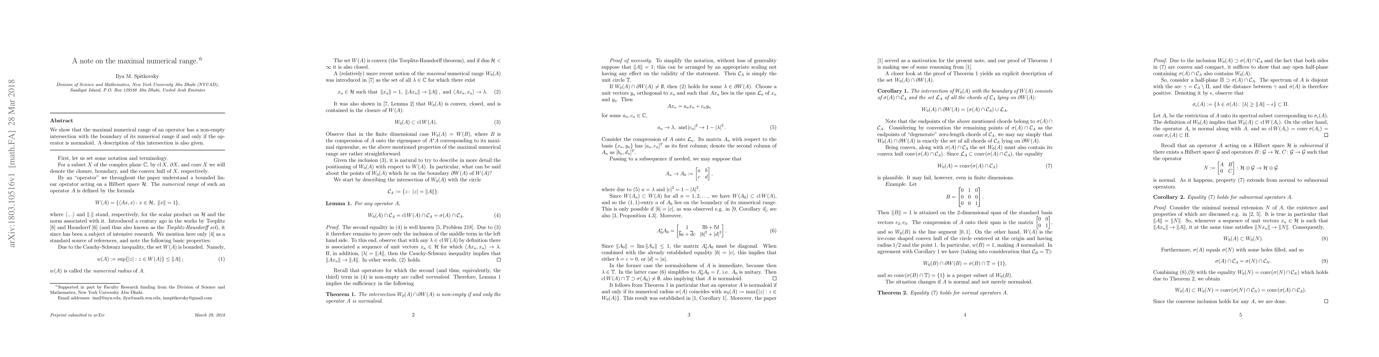 We show that the maximal numerical range of an operator has a non-empty intersection with the boundary of its numerical range if and only if the operator is normaloid. A description of this intersection is also given.