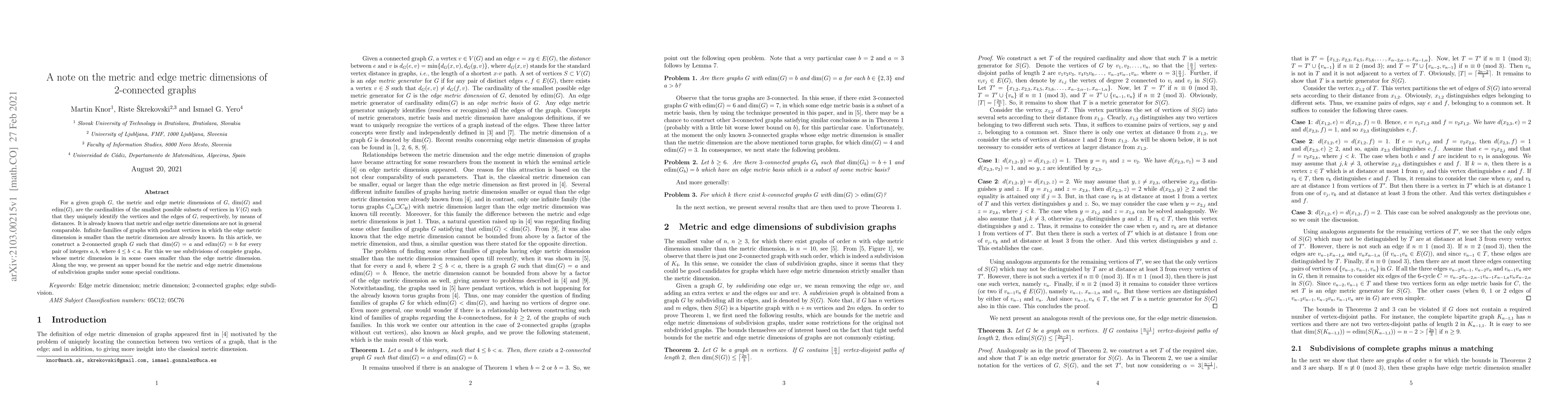 This paper constructs a 2-connected graph where the metric dimension $\dim(G)$ and edge metric dimension ${\rm edim}(G)$ can be any integers $a$ and $b$ respectively, with $4\le b<a$. It uses subdivisions of complete graphs to achieve this, and provides an upper bound for the dimensions of these subgraphs.