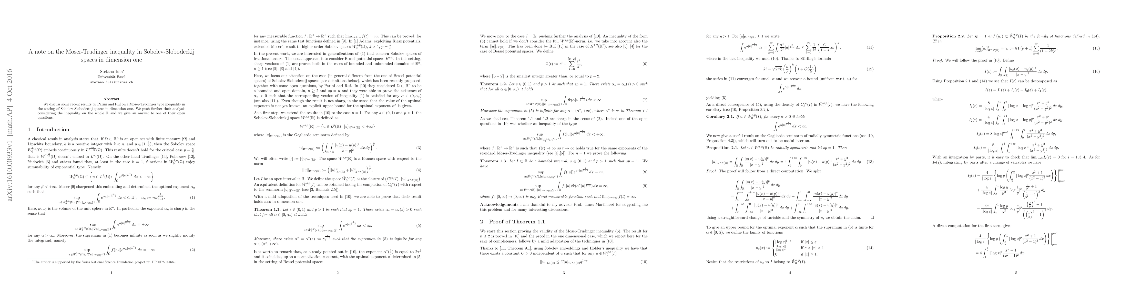 We discuss some recent results by Parini and Ruf on a Moser-Trudinger type inequality in the setting of Sobolev-Slobodeckij spaces in dimension one. We push further their analysis considering the inequality on the whole $\mathbb{R}$ and we give an answer to one of their open questions.