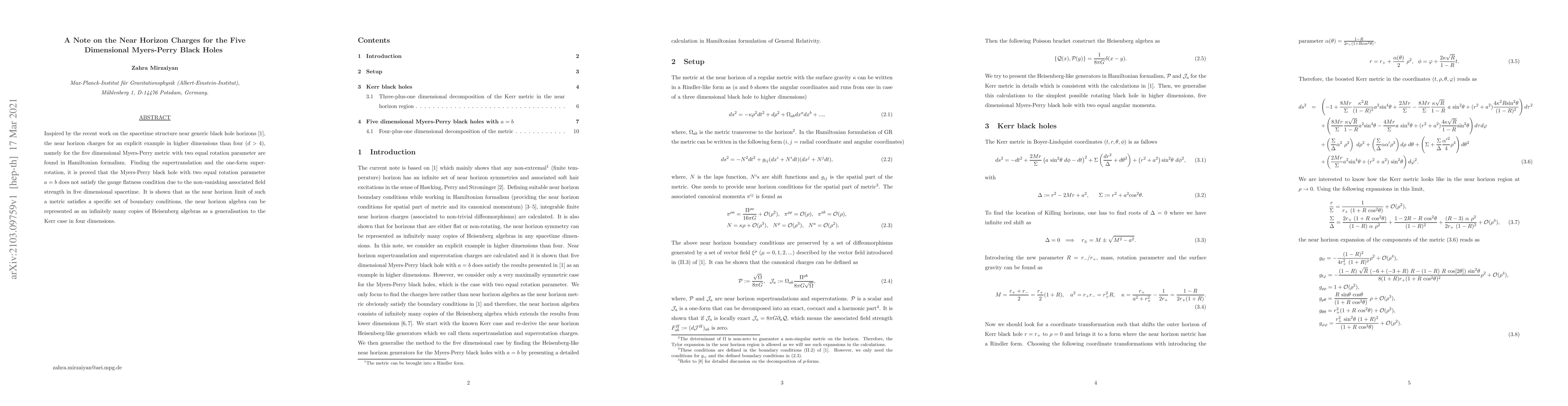 This paper explores the near horizon charges of five-dimensional Myers-Perry black holes with equal rotation parameters, revealing that they do not satisfy the gauge flatness condition due to non-vanishing field strength. The near horizon algebra is shown to generalize the Kerr case by representing it as infinitely many copies of Heisenberg algebras.