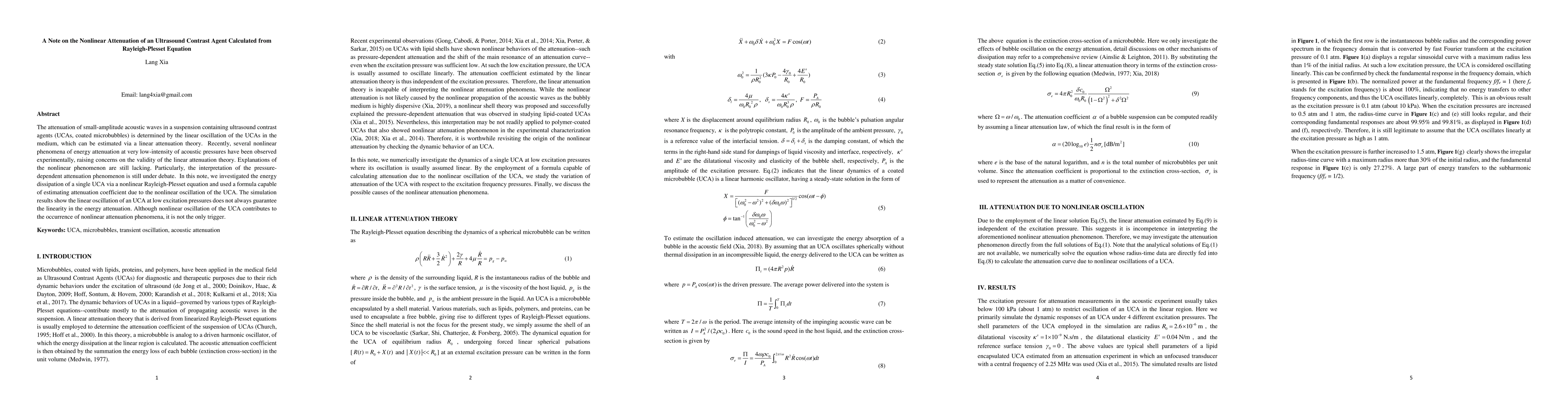 This paper explores the nonlinear attenuation of ultrasound contrast agents using the Rayleigh-Plesset equation, revealing that while nonlinear oscillation contributes to nonlinear attenuation, other factors also play a role in the observed phenomena.