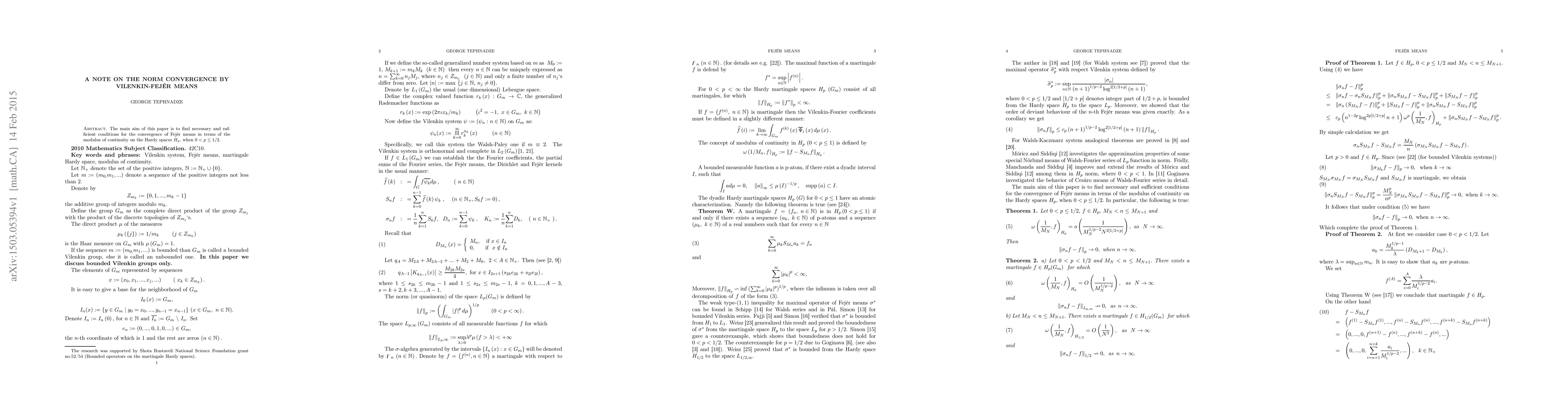 This paper investigates necessary and sufficient conditions for the convergence of Fejér means in terms of modulus of continuity on Hardy spaces $H_{p}$ when $0<p eq 1/2$. The study aims to provide a framework for understanding the behavior of Fejér means in specific Hardy spaces.