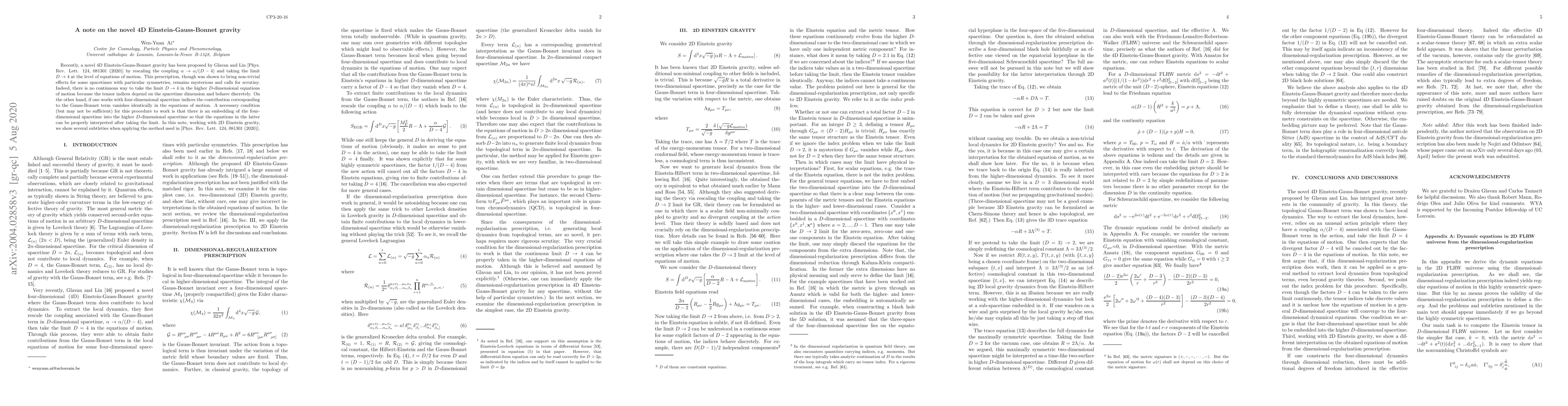 Recently, a novel 4D Einstein-Gauss-Bonnet gravity has been proposed by Glavan and Lin [Phys. Rev. Lett. 124, 081301 (2020)] by rescaling the coupling $\alpha \rightarrow \alpha/(D-4)$ and taking the limit $D\rightarrow 4$ at the level of equations of motion. This prescription, though was shown to bring non-trivial effects for some spacetimes with particular symmetries, remains mysterious and calls for scrutiny. Indeed, there is no continuous way to take the limit $D\rightarrow 4$ in the higher $D$-dimensional equations of motion because the tensor indices depend on the spacetime dimension and behave discretely. On the other hand, if one works with four-dimensional spacetime indices the contribution corresponding to the Gauss-Bonnet term vanishes identically in the equations of motion. A necessary condition (but may not be sufficient) for this procedure to work is that there is an embedding of the four-dimensional spacetime into the higher $D$-dimensional spacetime so that the equations in the latter can be properly interpreted after taking the limit. In this note, working with 2D Einstein gravity, we show several subtleties when applying the method used in [Phys. Rev. Lett. 124, 081301 (2020)].
