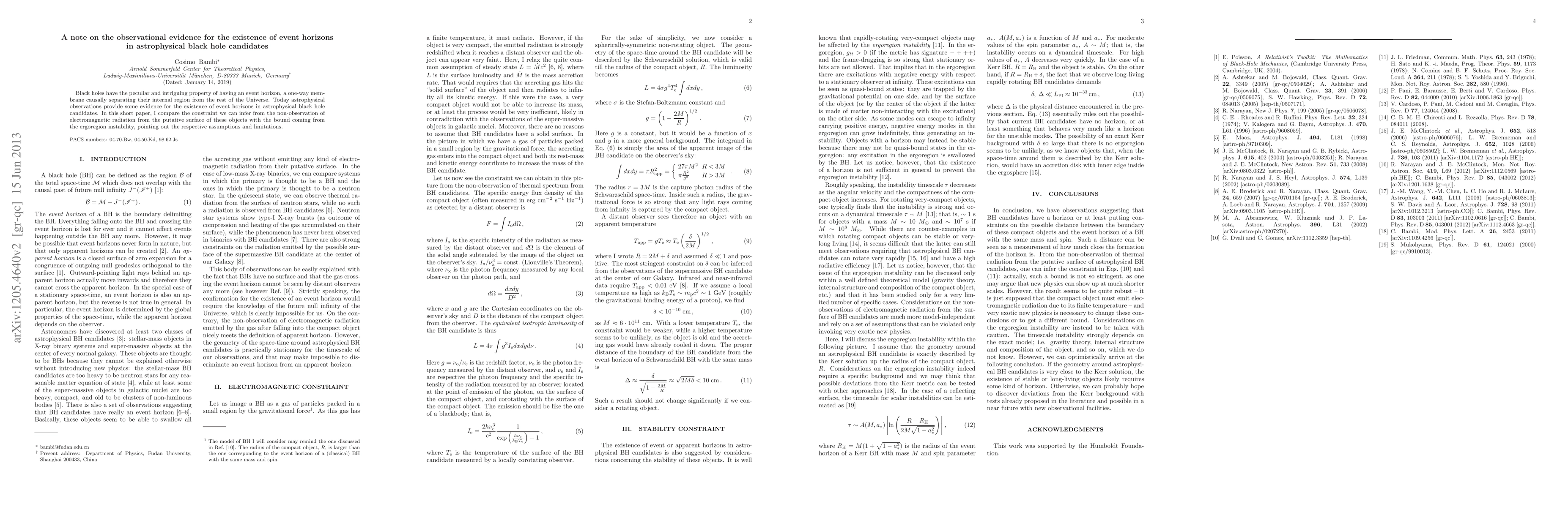 Black holes have the peculiar and intriguing property of having an event horizon, a one-way membrane causally separating their internal region from the rest of the Universe. Today astrophysical observations provide some evidence for the existence of event horizons in astrophysical black hole candidates. In this short paper, I compare the constraint we can infer from the non-observation of electromagnetic radiation from the putative surface of these objects with the bound coming from the ergoregion instability, pointing out the respective assumptions and limitations.