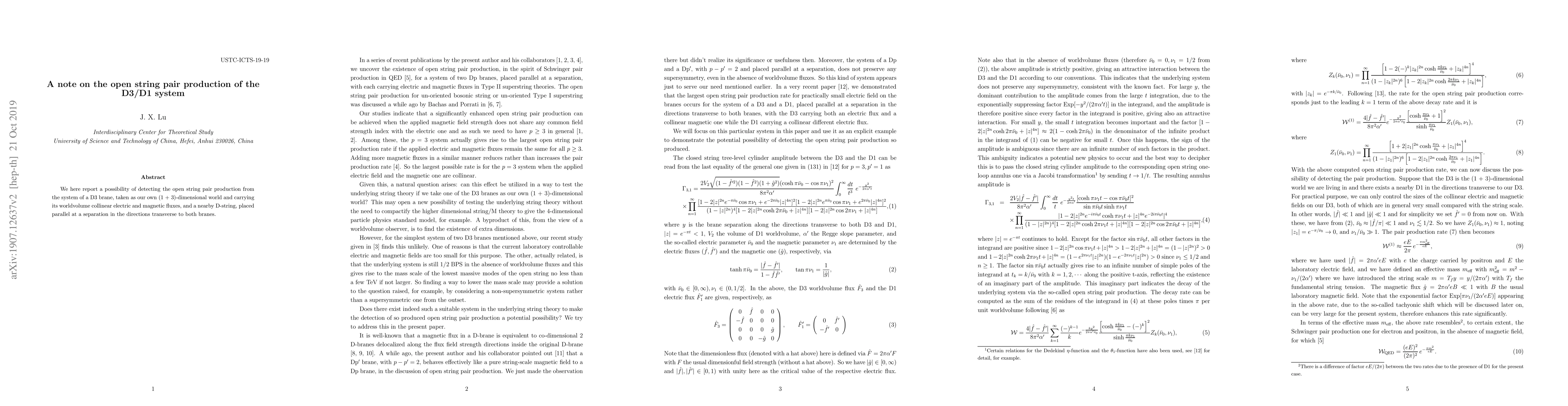Summary: This paper explores the potential for detecting open string pair production in the interaction between a D3 brane with electric and magnetic fluxes and a nearby D-string, suggesting a method for observing such phenomena in the D3/D1 system.
