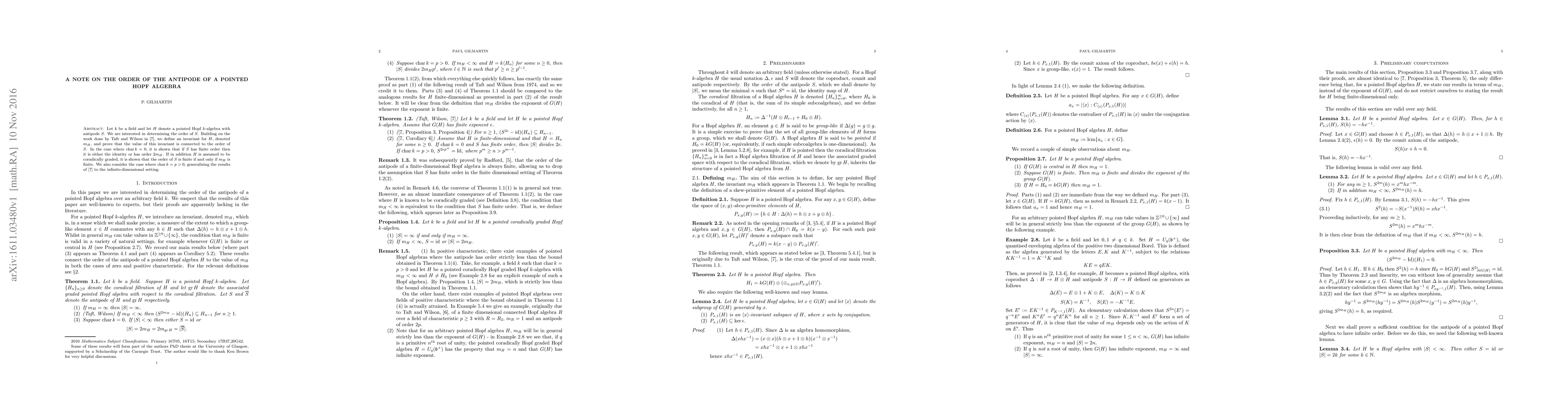 Let $k$ be a field and let $H$ denote a pointed Hopf $k$-algebra with antipode $S$. We are interested in determining the order of $S$. Building on the work done by Taft and Wilson $[7]$, we define an invariant for $H$, denoted $m_{H}$, and prove that the value of this invariant is connected to the order of $S$. In the case where $\operatorname{char}k=0$, it is shown that if $S$ has finite order then it is either the identity or has order $2m_{H}$. If in addition $H$ is assumed to be coradically graded, it is shown that the order of $S$ is finite if and only if $m_{H}$ is finite. We also consider the case where $\operatorname{char}k=p>0$, generalising the results of $[7]$ to the infinite-dimensional setting.