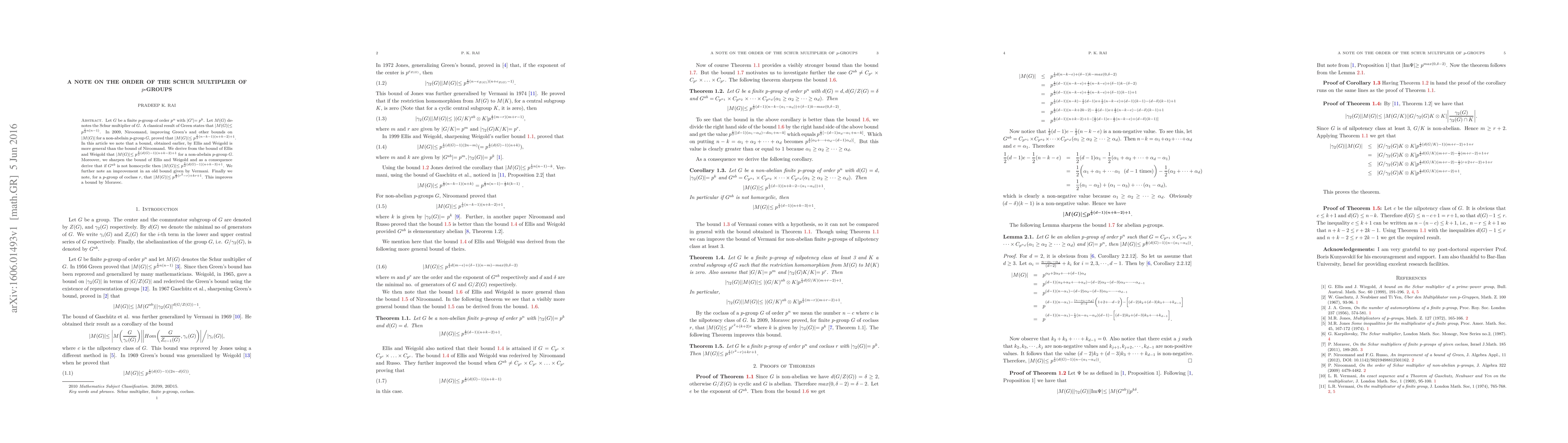 Let $G$ be a finite $p$-group of order $p^n$ with $|G'| = p^k$. Let $M(G)$ denotes the Schur multiplier of $G$. A classical result of Green states that $|M(G)| \leq p^{\frac{1}{2}n(n-1)}$. In 2009, Niroomand, improving Green's and other bounds on $|M(G)|$ for a non-abelain $p$-group $G$, proved that $|M(G)| \leq p^{\frac{1}{2}(n-k-1)(n+k-2)+1}$. In this article we note that a bound, obtained earlier, by Ellis and Weigold is more general than the bound of Niroomand. We derive from the bound of Ellis and Weigold that $|M(G)| \leq p^{\frac{1}{2}(d(G)-1)(n+k-2)+1}$ for a non-abelain $p$-group $G$. Moreover, we sharpen the bound of Ellis and Weigold and as a consequence derive that if $G^{ab}$ is not homocyclic then $|M(G)| \leq p^{\frac{1}{2}(d(G)-1)(n+k-3)+1}$. We further note an improvement in an old bound given by Vermani. Finally we note, for a $p$-group of coclass $r$, that $|M(G)| \leq p^{\frac{1}{2}(r^2-r)+kr+1}$. This improves a bound by Moravec.